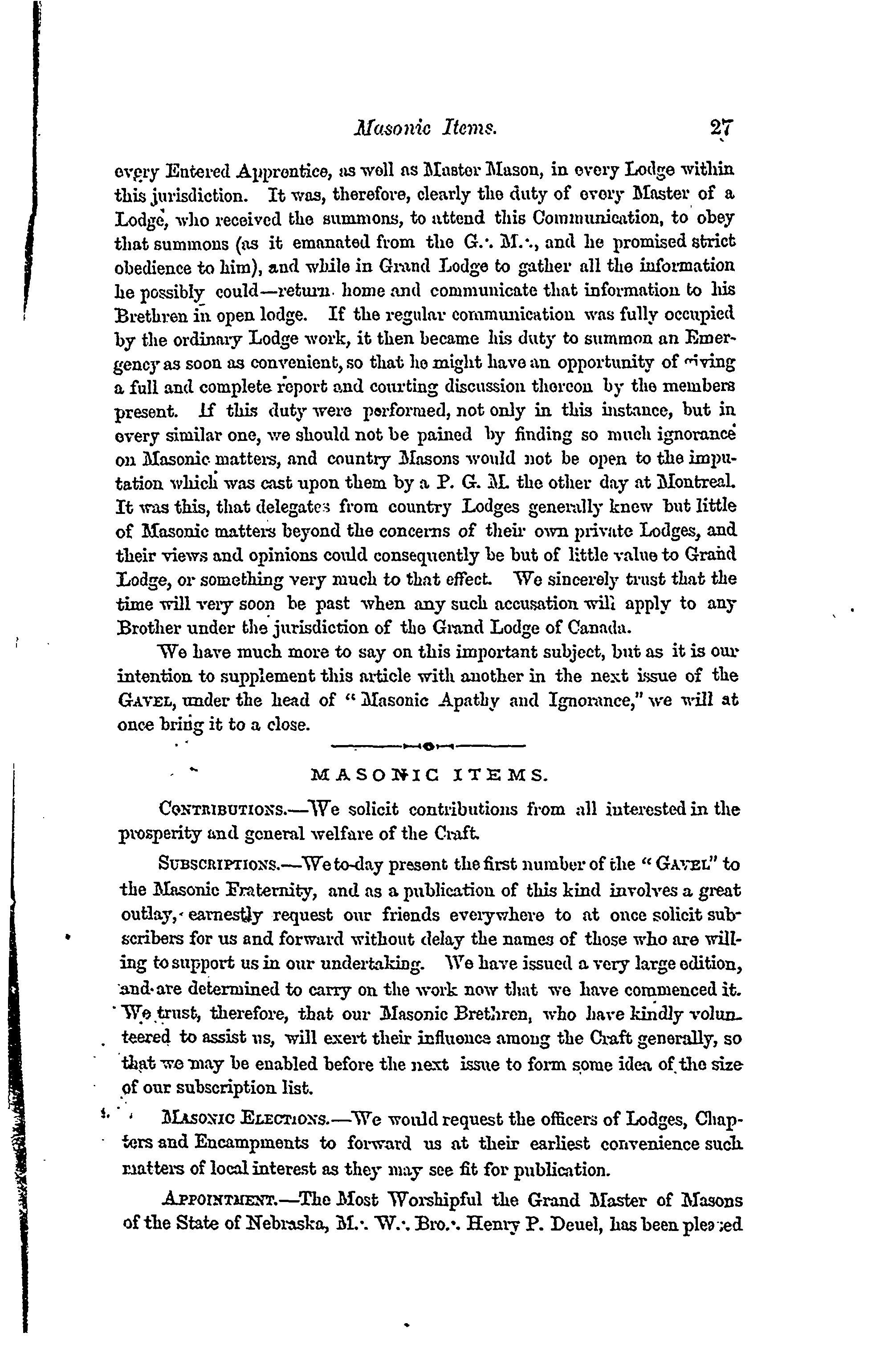The gavel : [Vol. 1, no. 1 (Jan. 1870)]