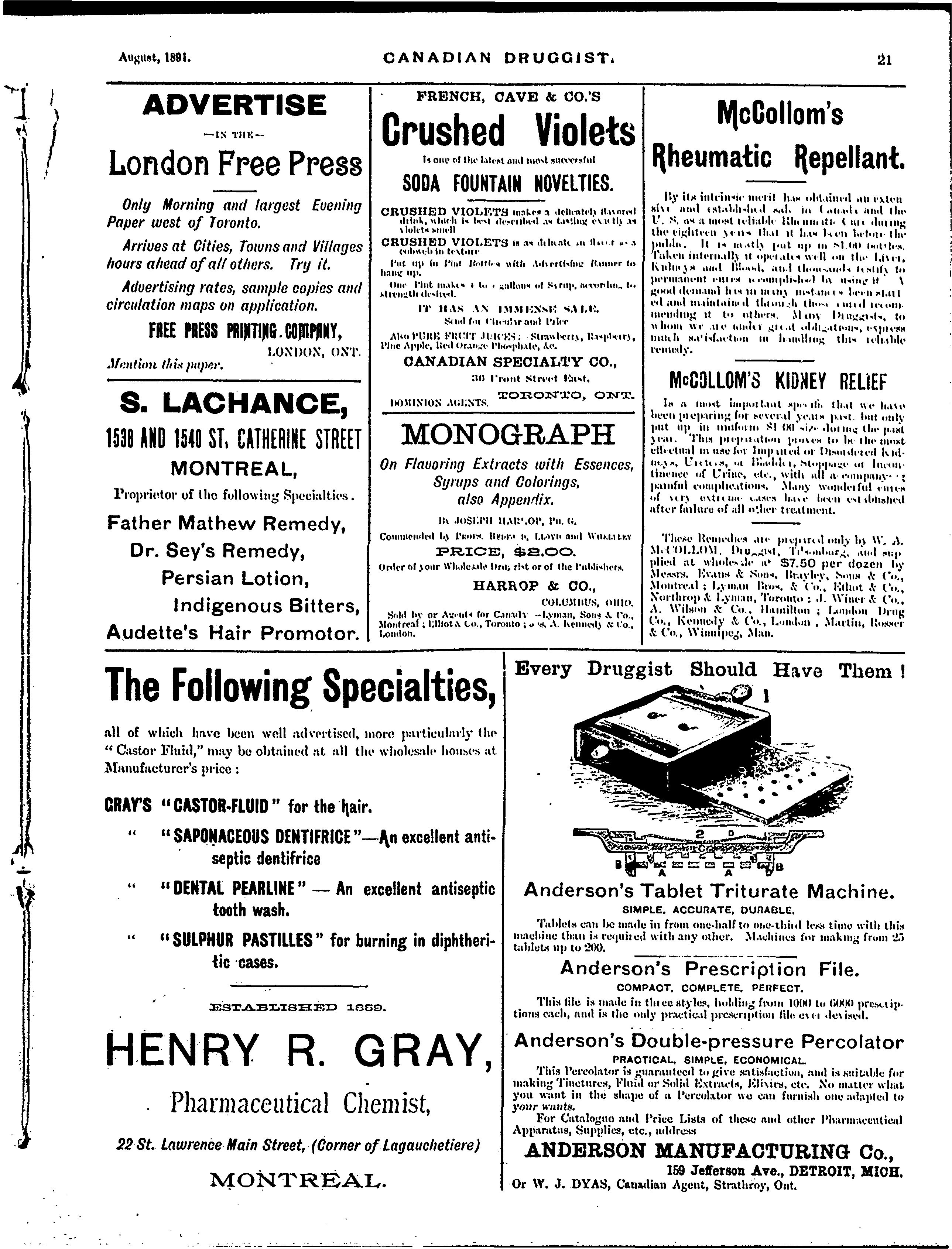 Canadian druggist [Vol. 3, no. 8 (Aug. 1891)]
