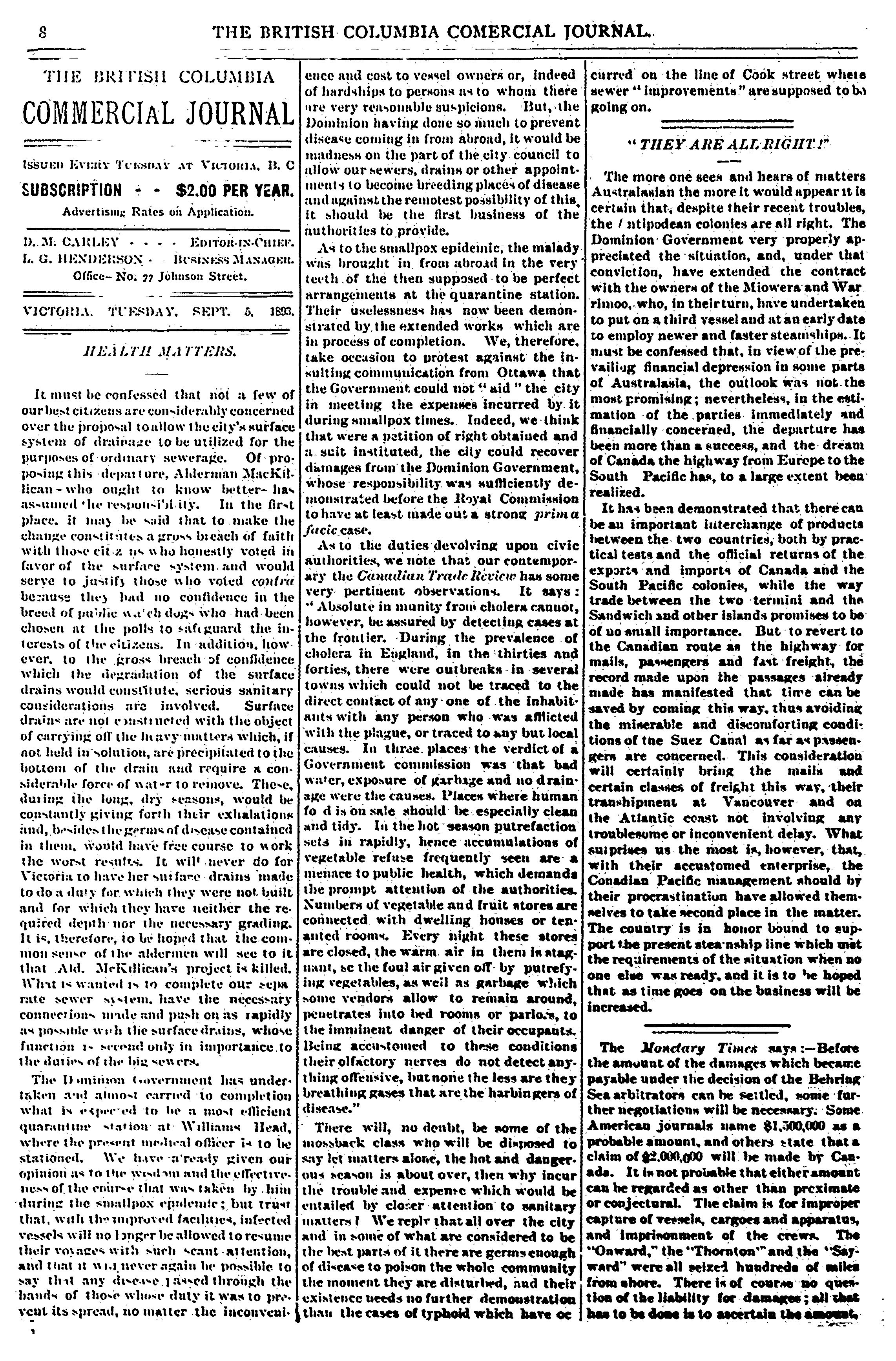 - The British Columbia commercial journal [Vol. 3, no. 26 (Sept. 5, 1893)]