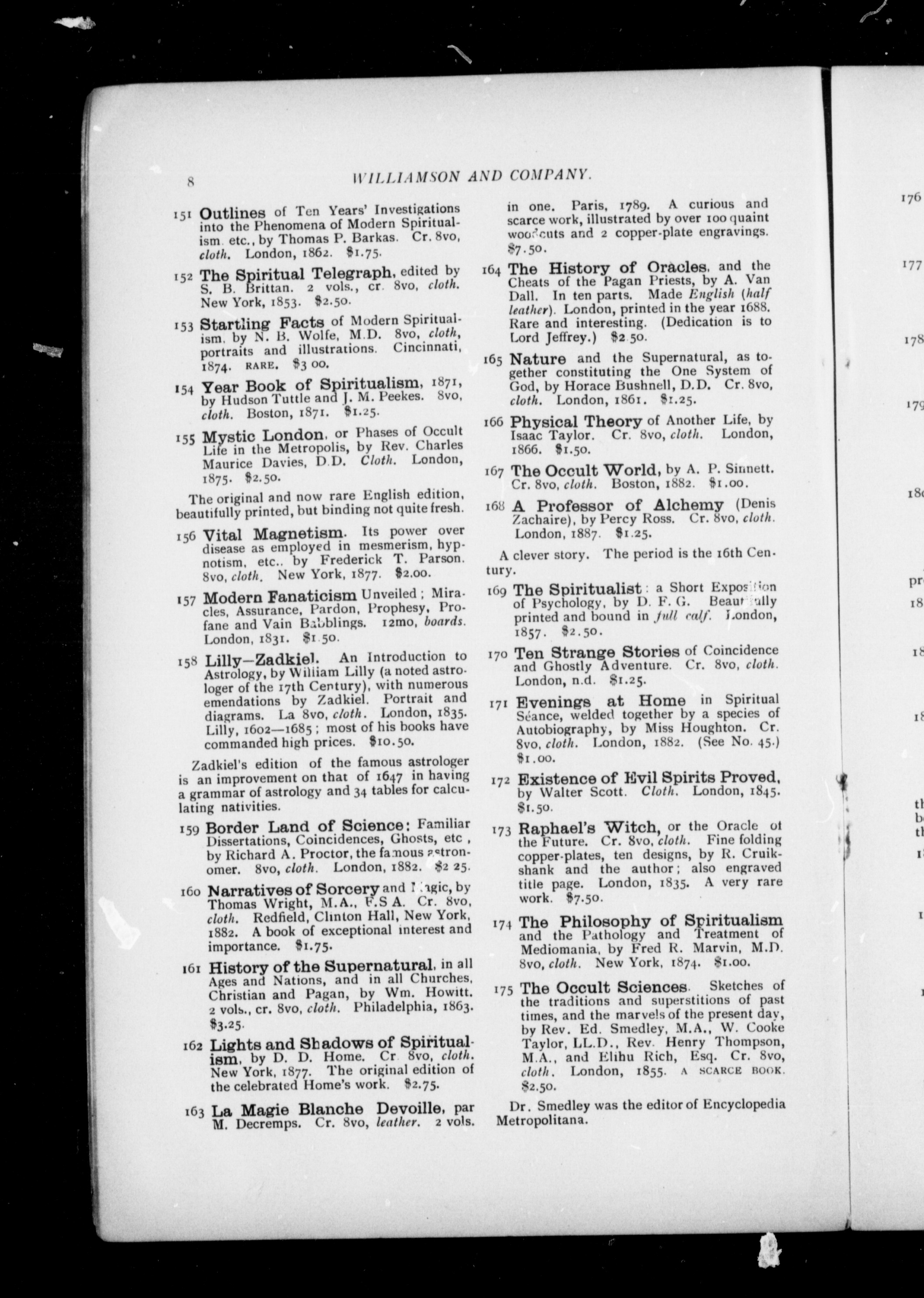 Catalogue of rare occult books (some quite unique) : spiritualism, majick, astrology, mesmerism ... for sale ... by Williamson & Company : New Series No. 1 (1898)