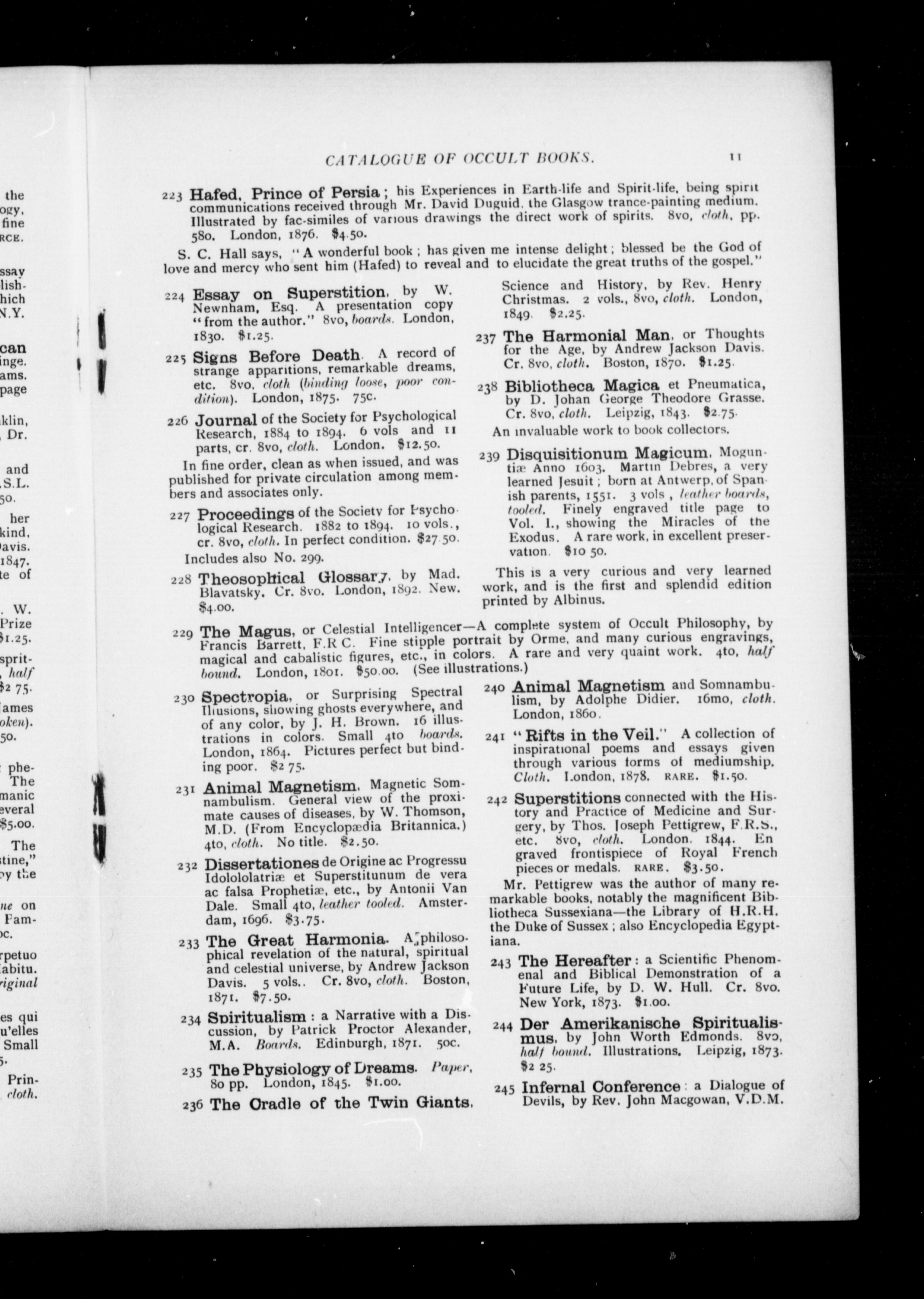 - Catalogue of rare occult books (some quite unique) ...