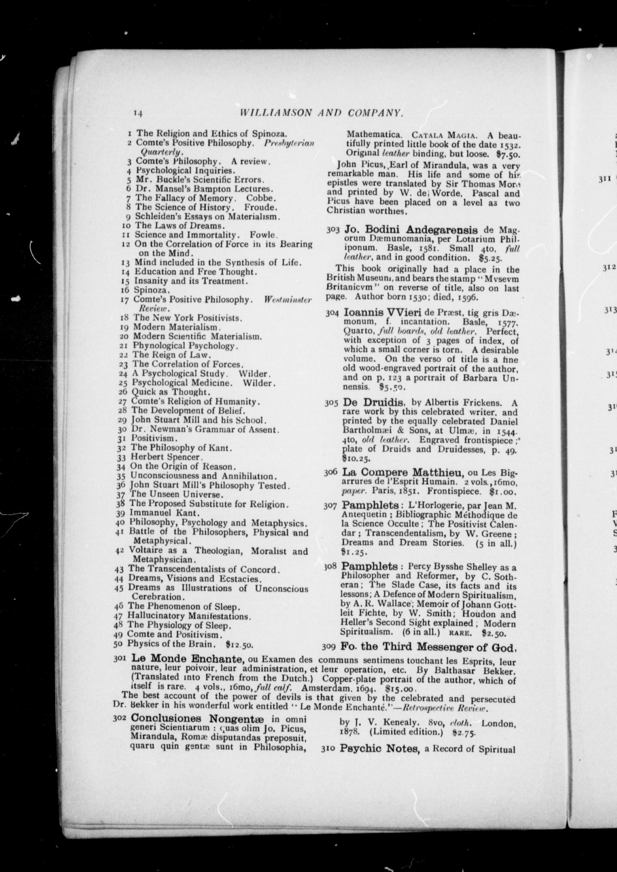 Catalogue of rare occult books (some quite unique) : spiritualism, majick, astrology, mesmerism ... for sale ... by Williamson & Company : New Series No. 1 (1898)