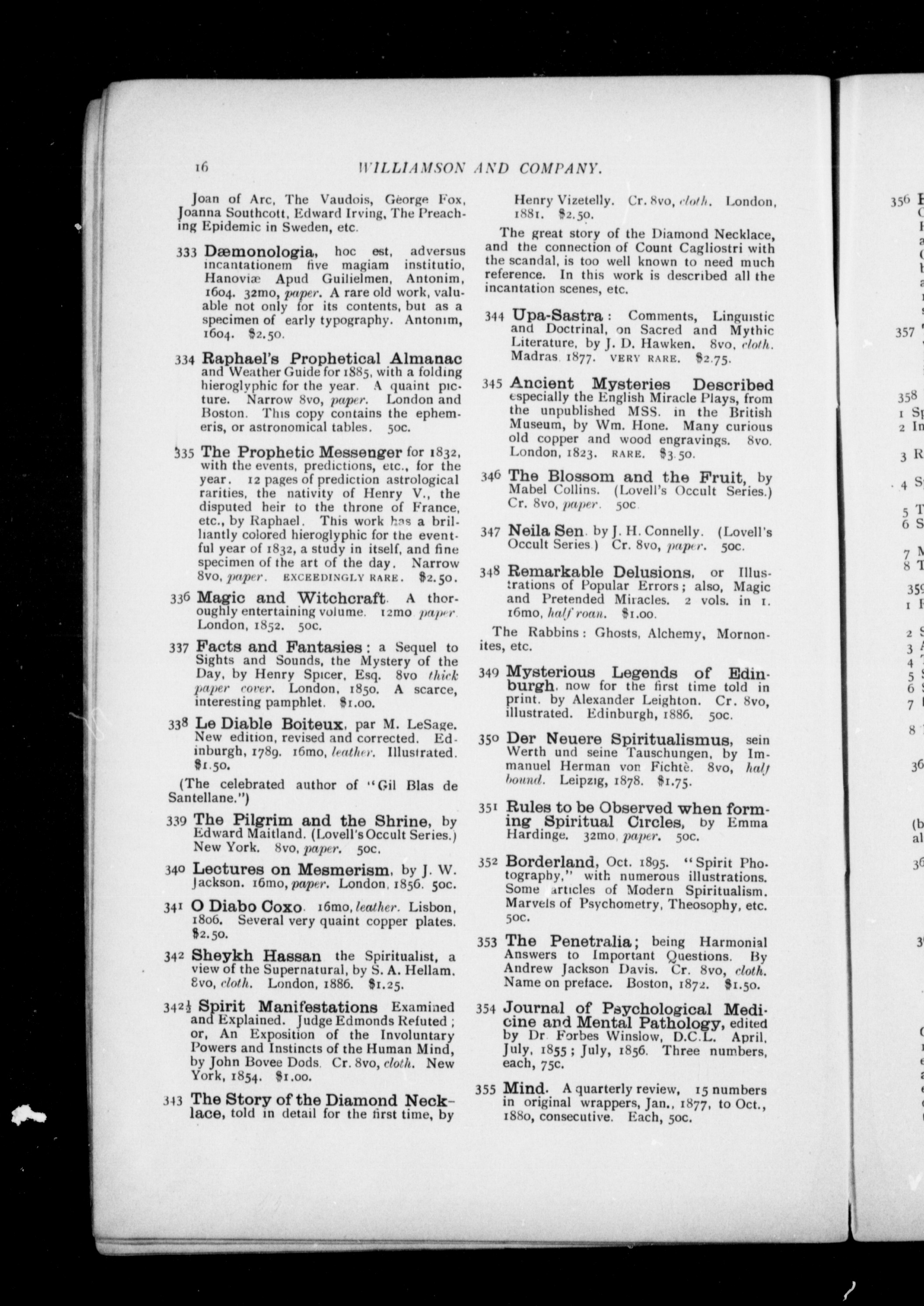 Catalogue of rare occult books (some quite unique) : spiritualism, majick, astrology, mesmerism ... for sale ... by Williamson & Company : New Series No. 1 (1898)
