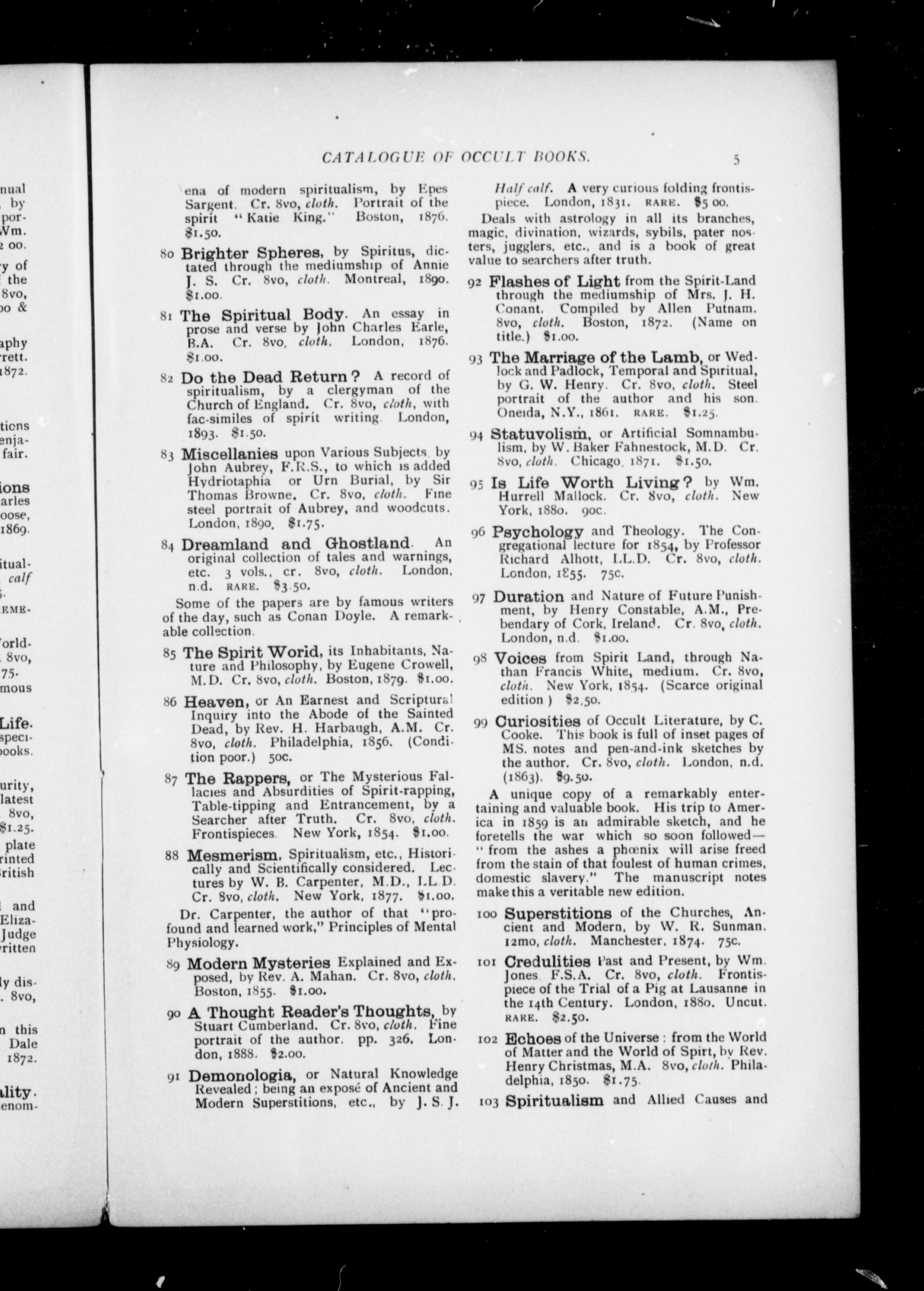 - Catalogue of rare occult books (some quite unique) ...