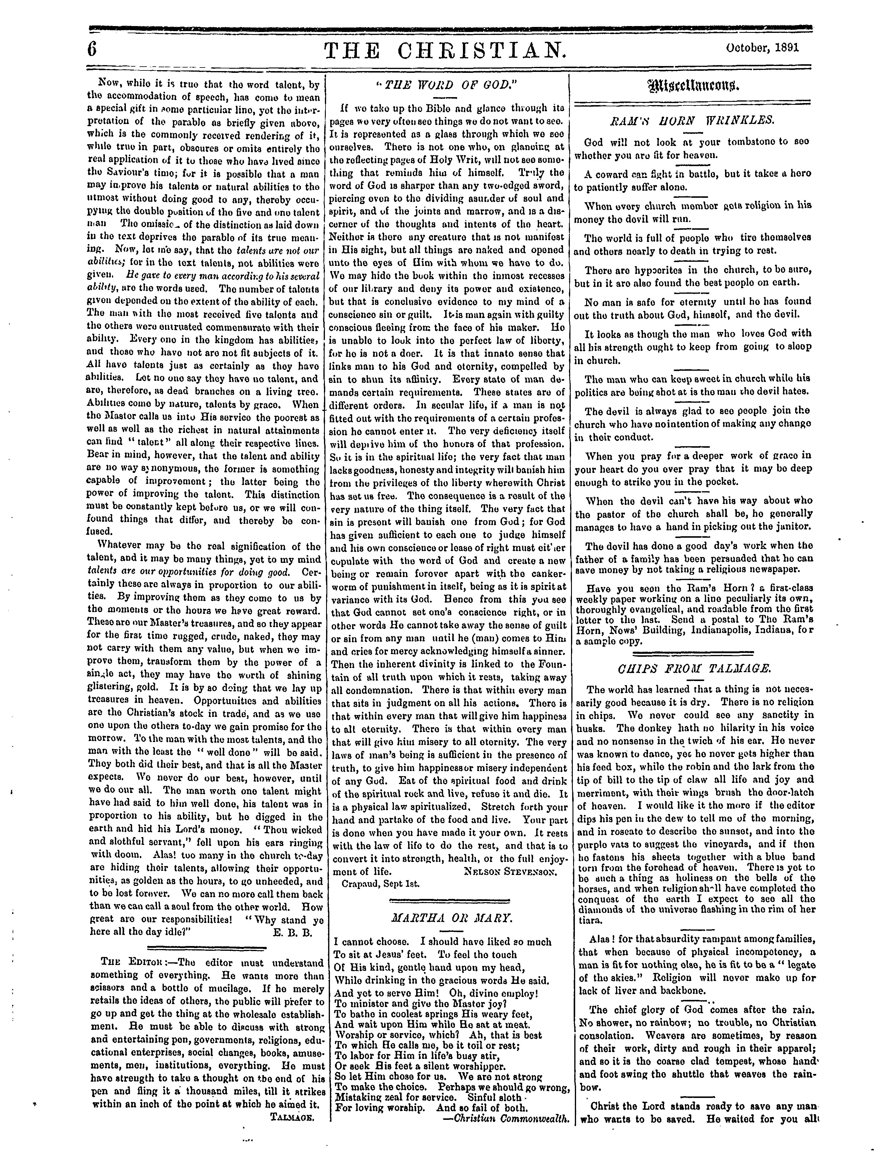 - The Christian [Vol. 8, no. 12 (Oct. 1891)]