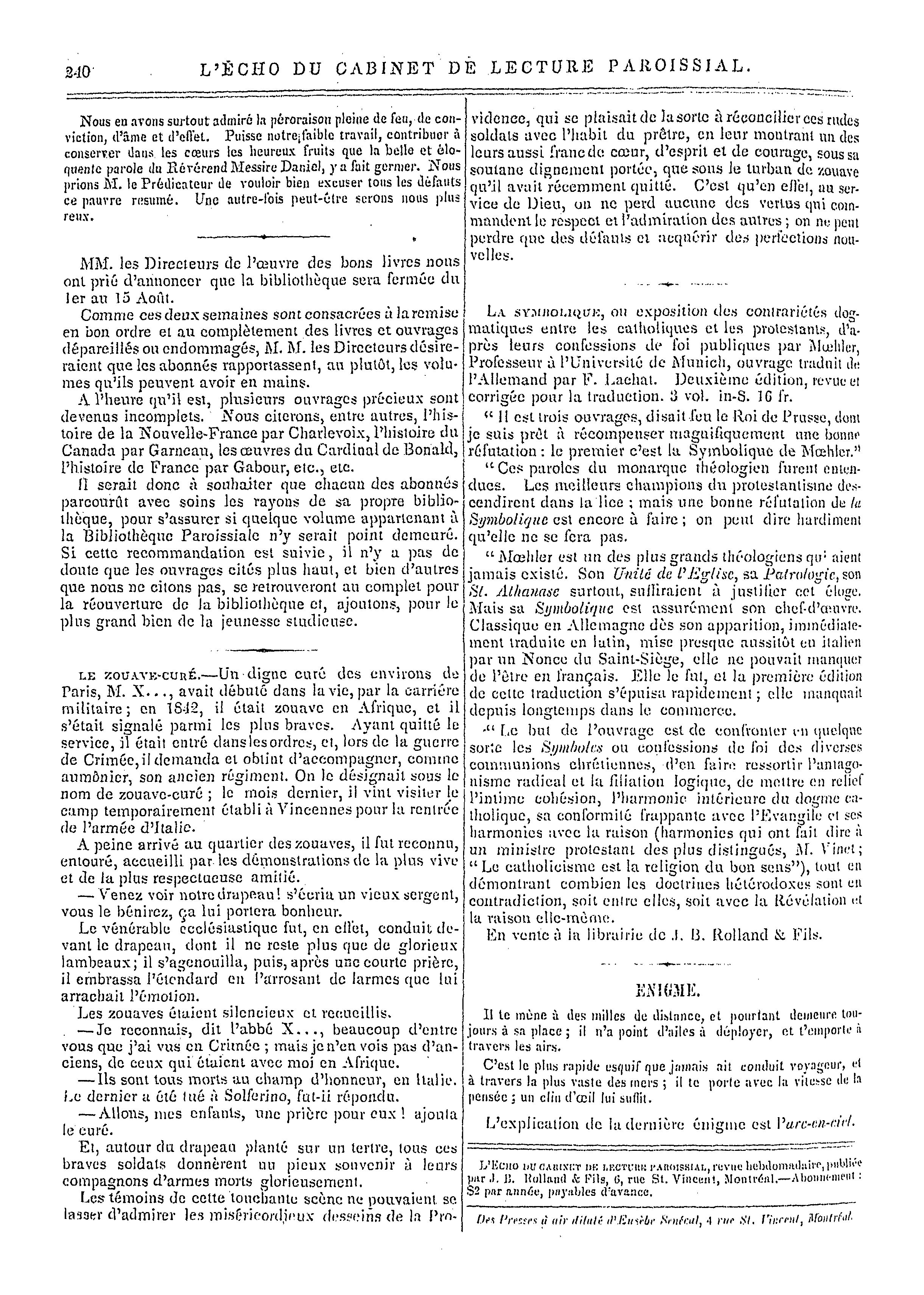 Montréal : J.B. Rolland, [1861]; 9 images avec recherche en texte intégral