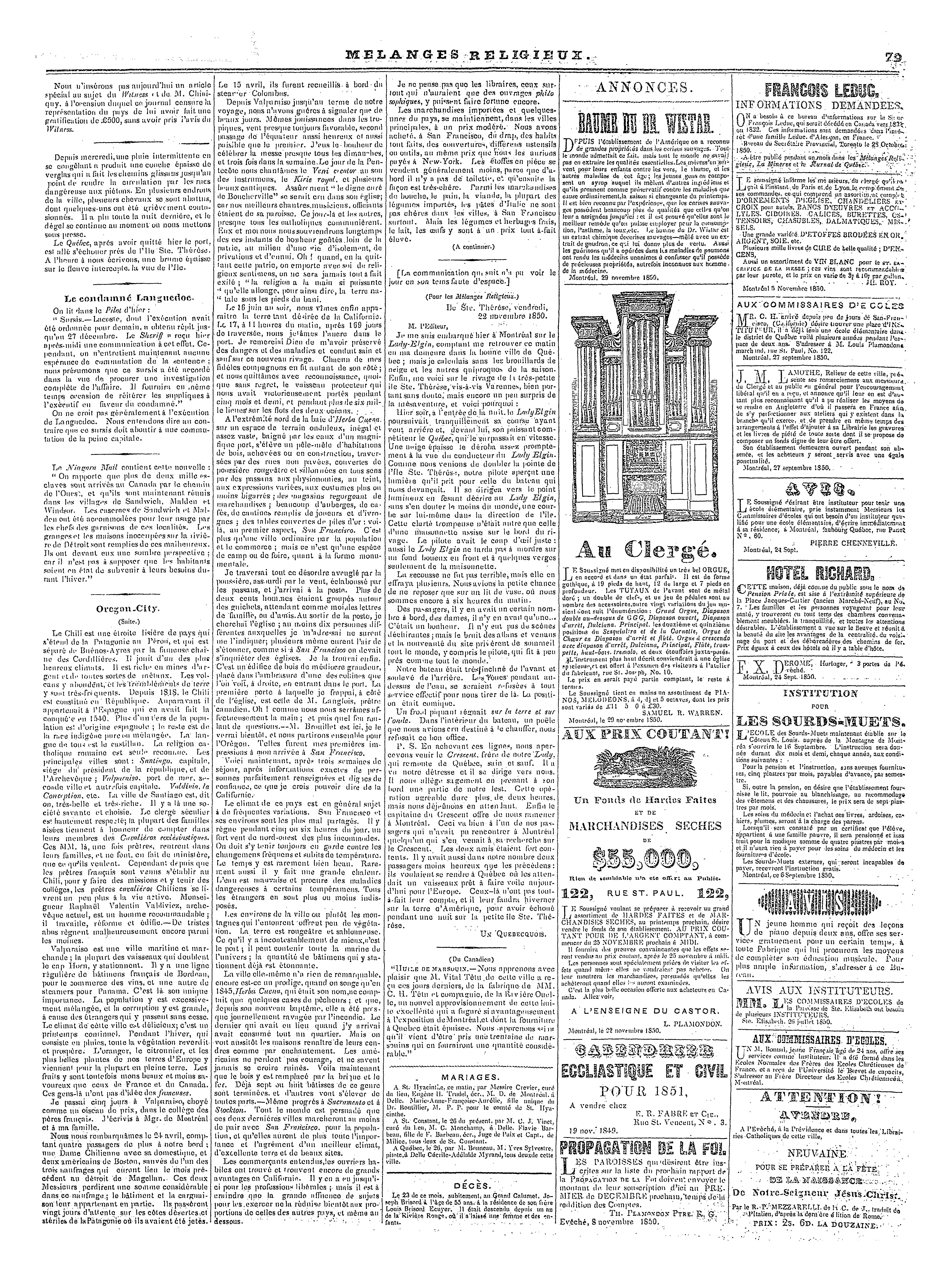 Mélanges religieux, politiques, commerciaux et littéraires : [Vol. 14, no 19 (29 nov.1850)]
