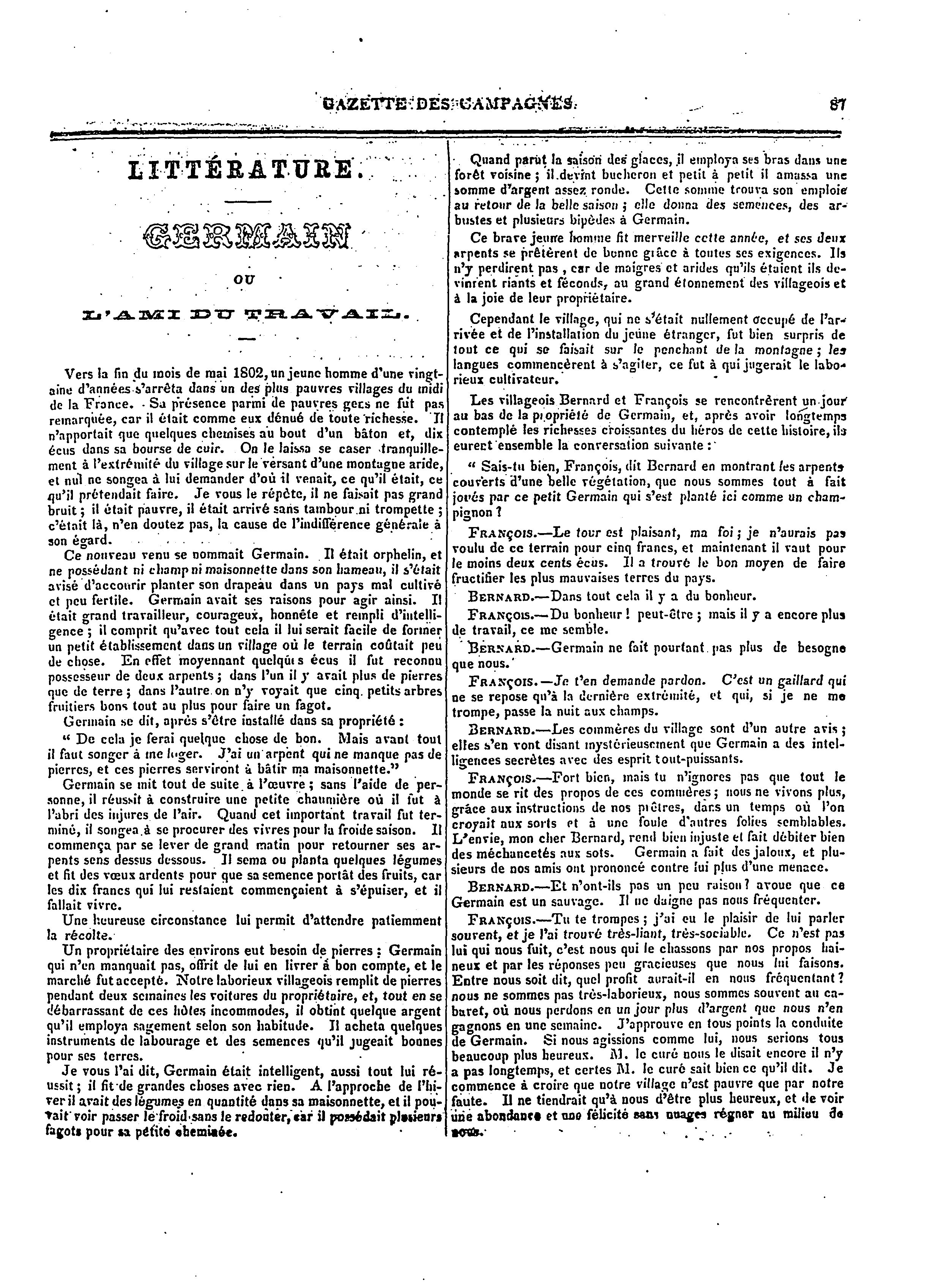 Gazette des campagnes : [2e année, no 11 (1er avril 1863)]