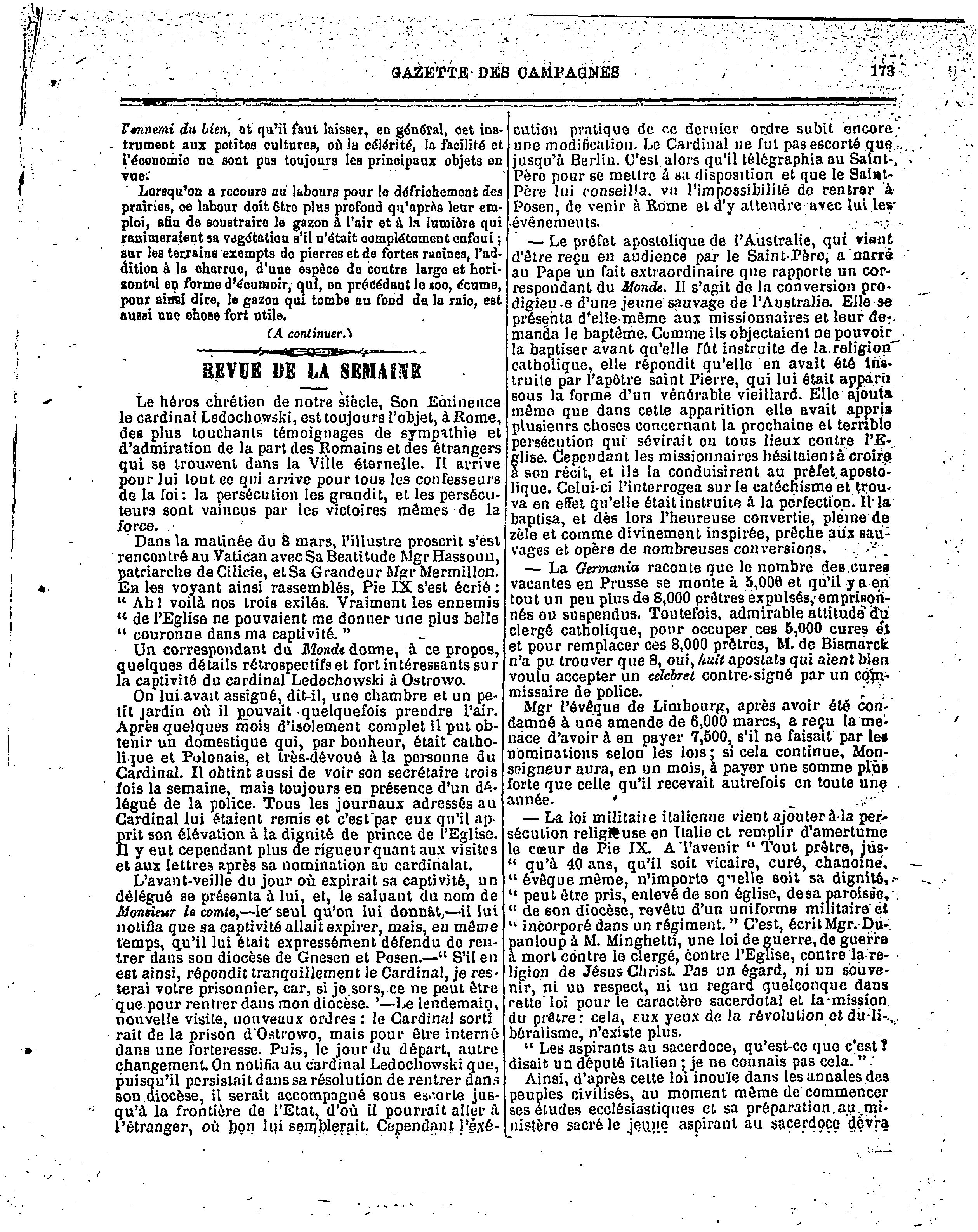 - Gazette des campagnes [14e année, nos 22/23 (20 avril 1876)]