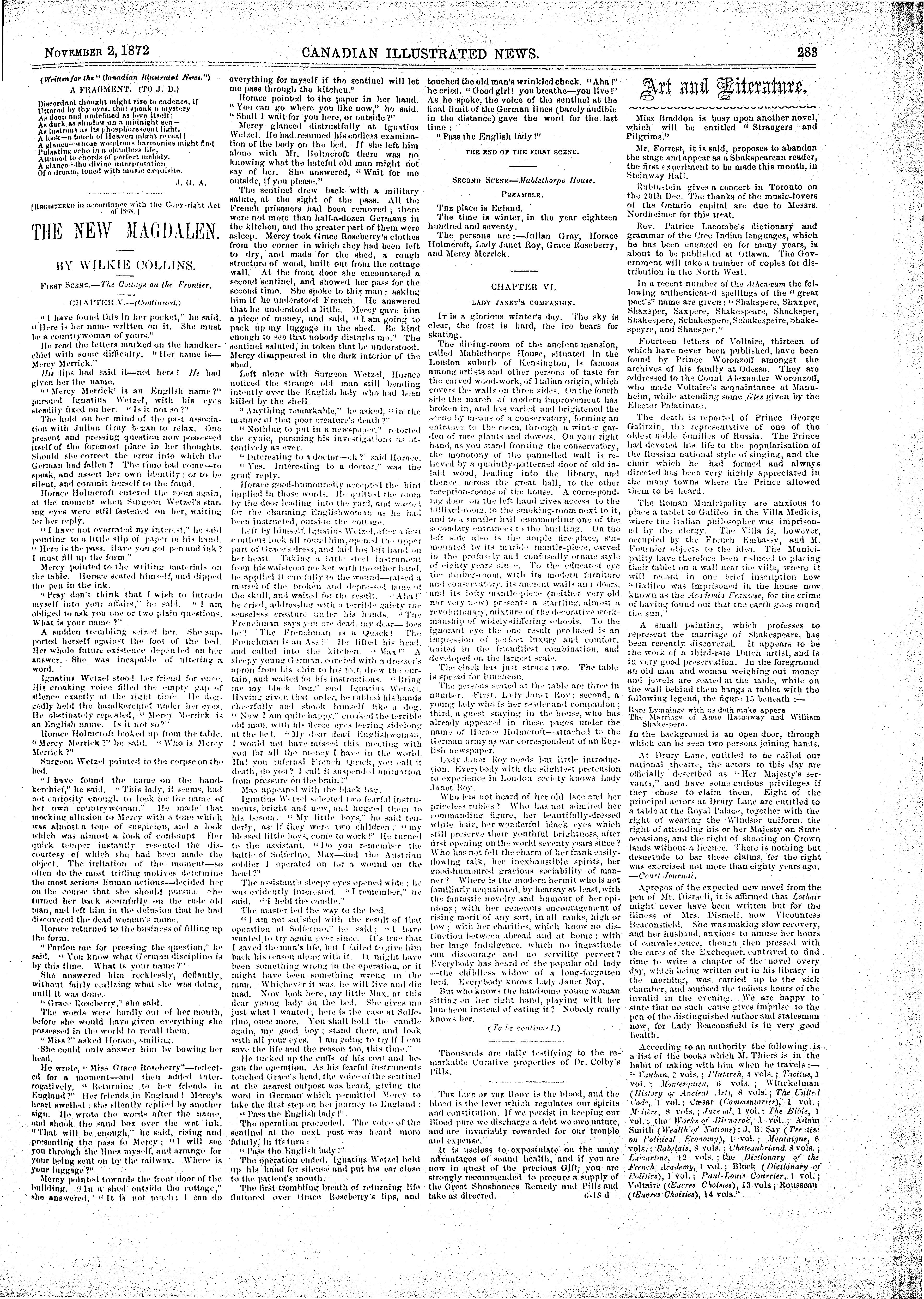 Canadian illustrated news [Vol. 6, no. 18 (Nov. 2, 1872)]