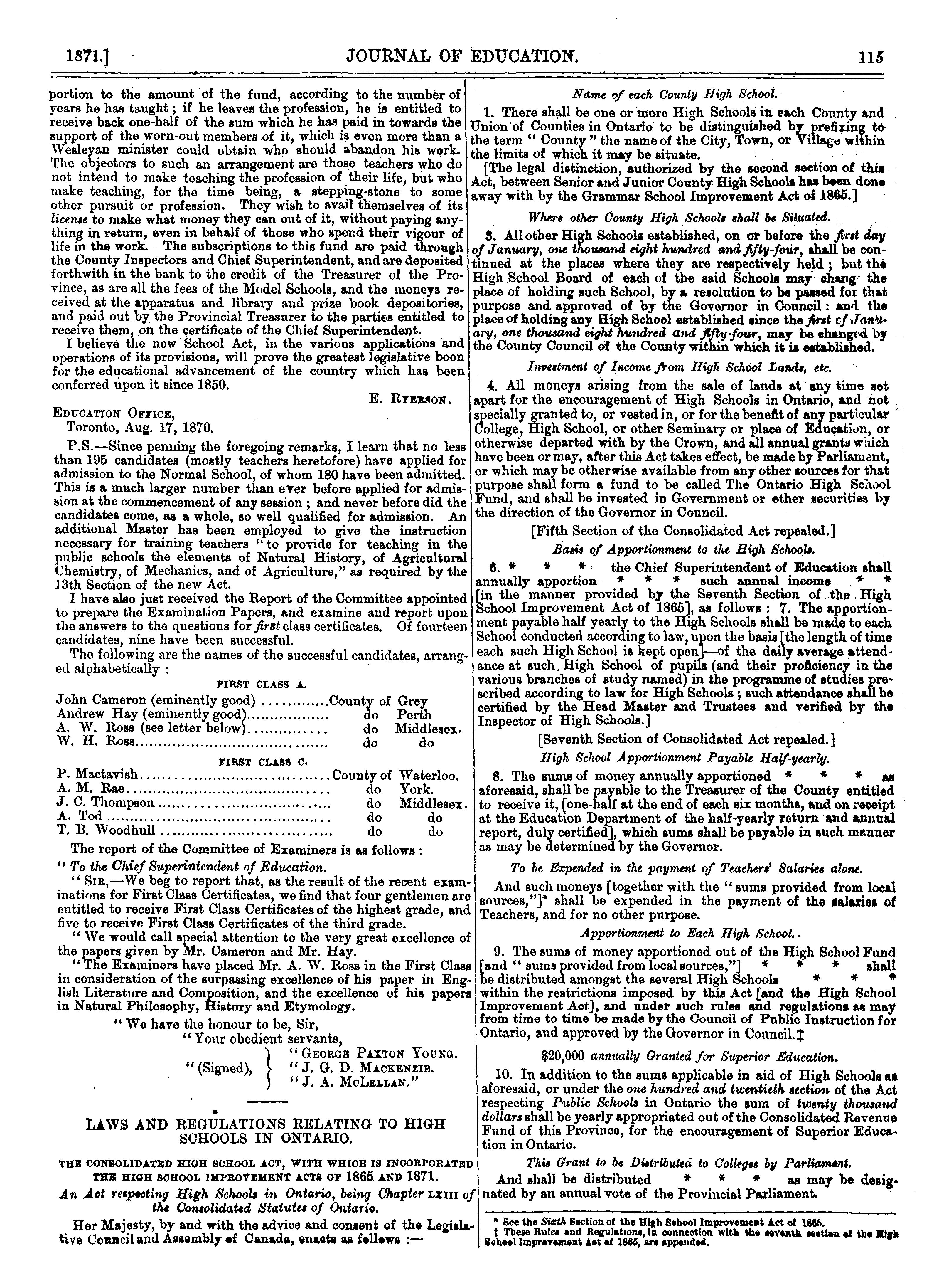 - Journal of education, province of Ontario [Vol. 24, no. 8 (Aug. 1871)]