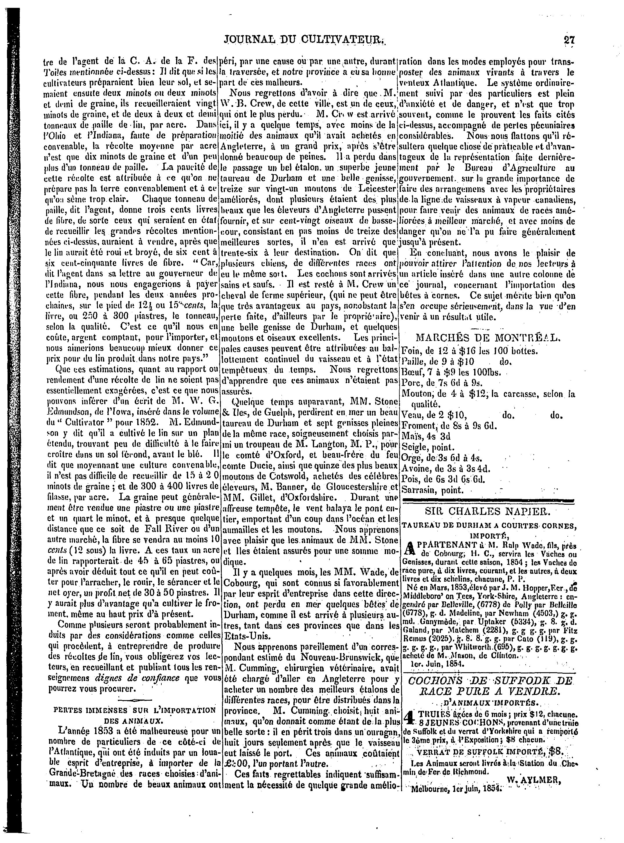 Journal du cultivateur et procédés du Bureau d'agriculture du Bas- Canada : [Vol. 2, no 2 (juin 1854)]