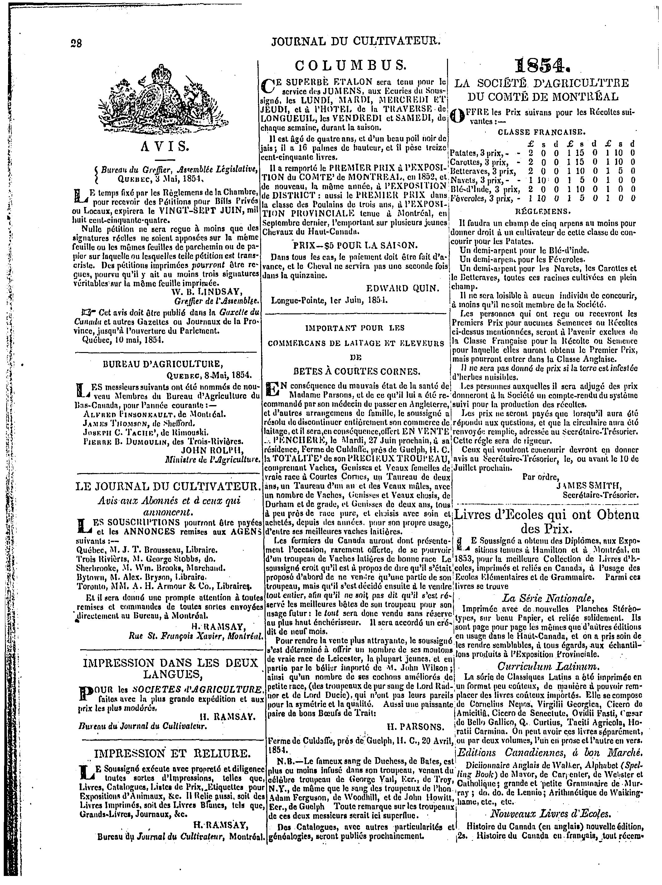 Journal du cultivateur et procédés du Bureau d'agriculture du Bas- Canada : [Vol. 2, no 2 (juin 1854)]