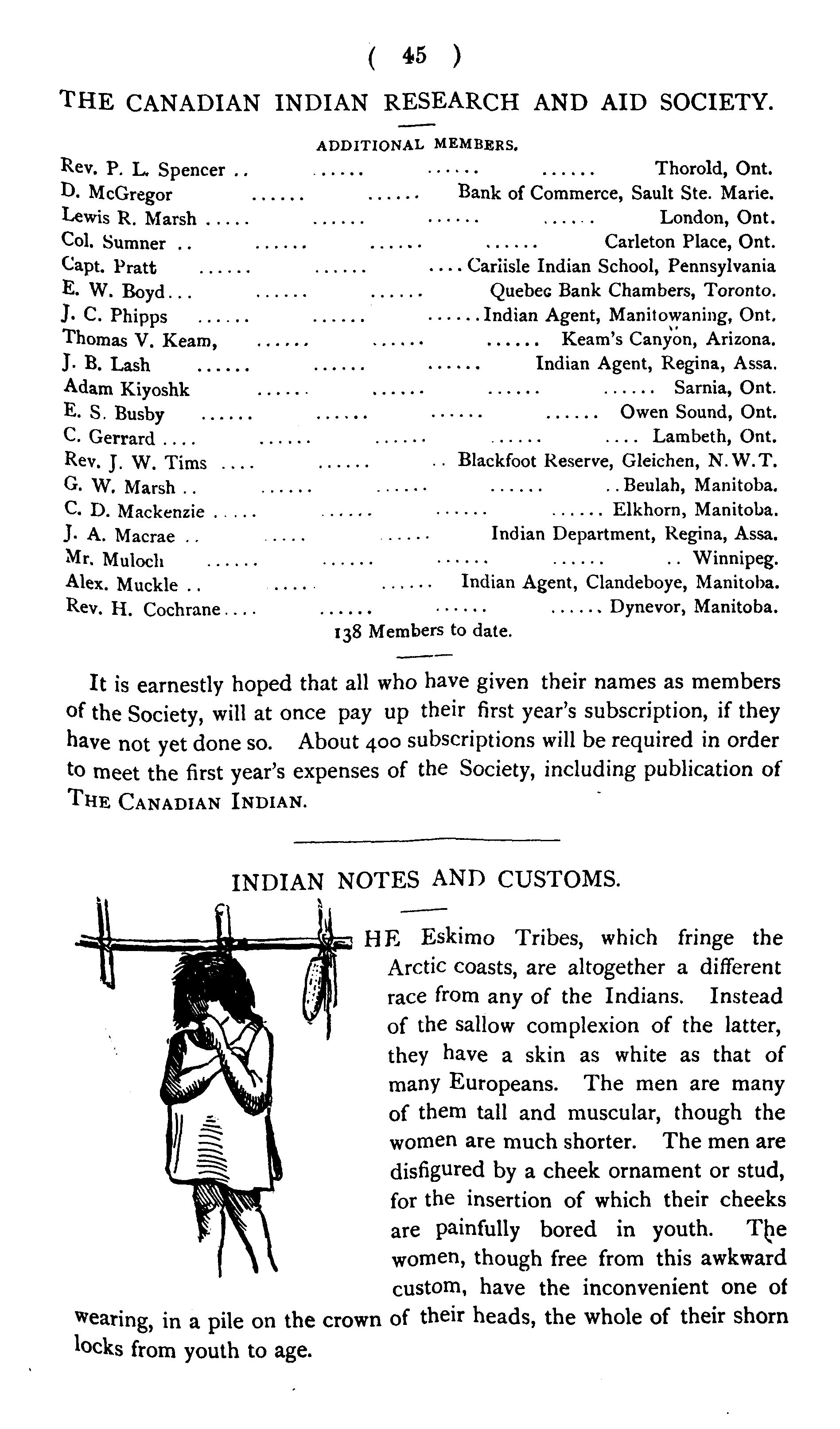 - The Canadian Indian [Vol. 1, no. 2 (Nov. 1890)]