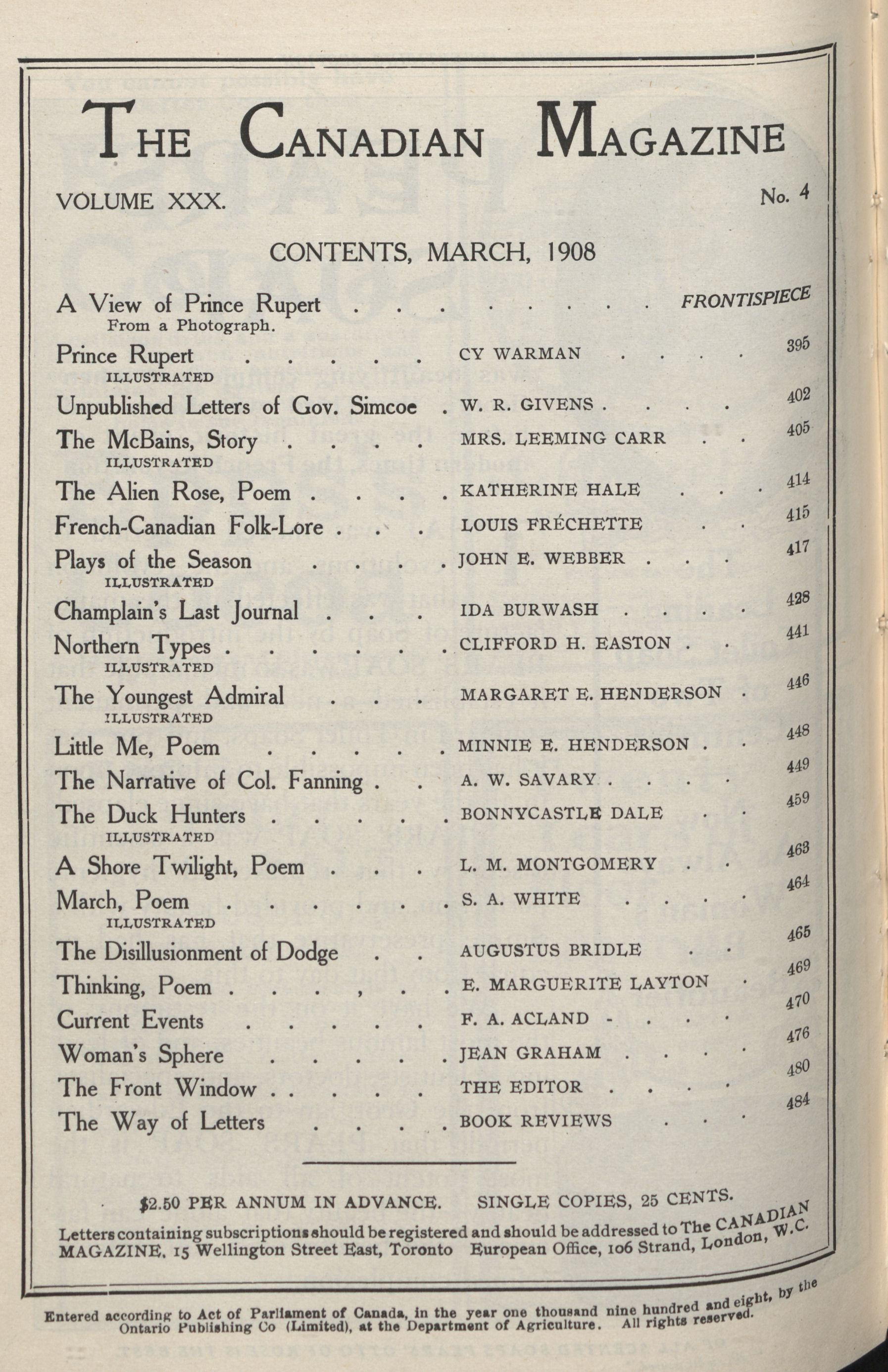 Toronto : Ontario Pub. Co., [1908]; 186 images, 185 avec recherche en texte intégral