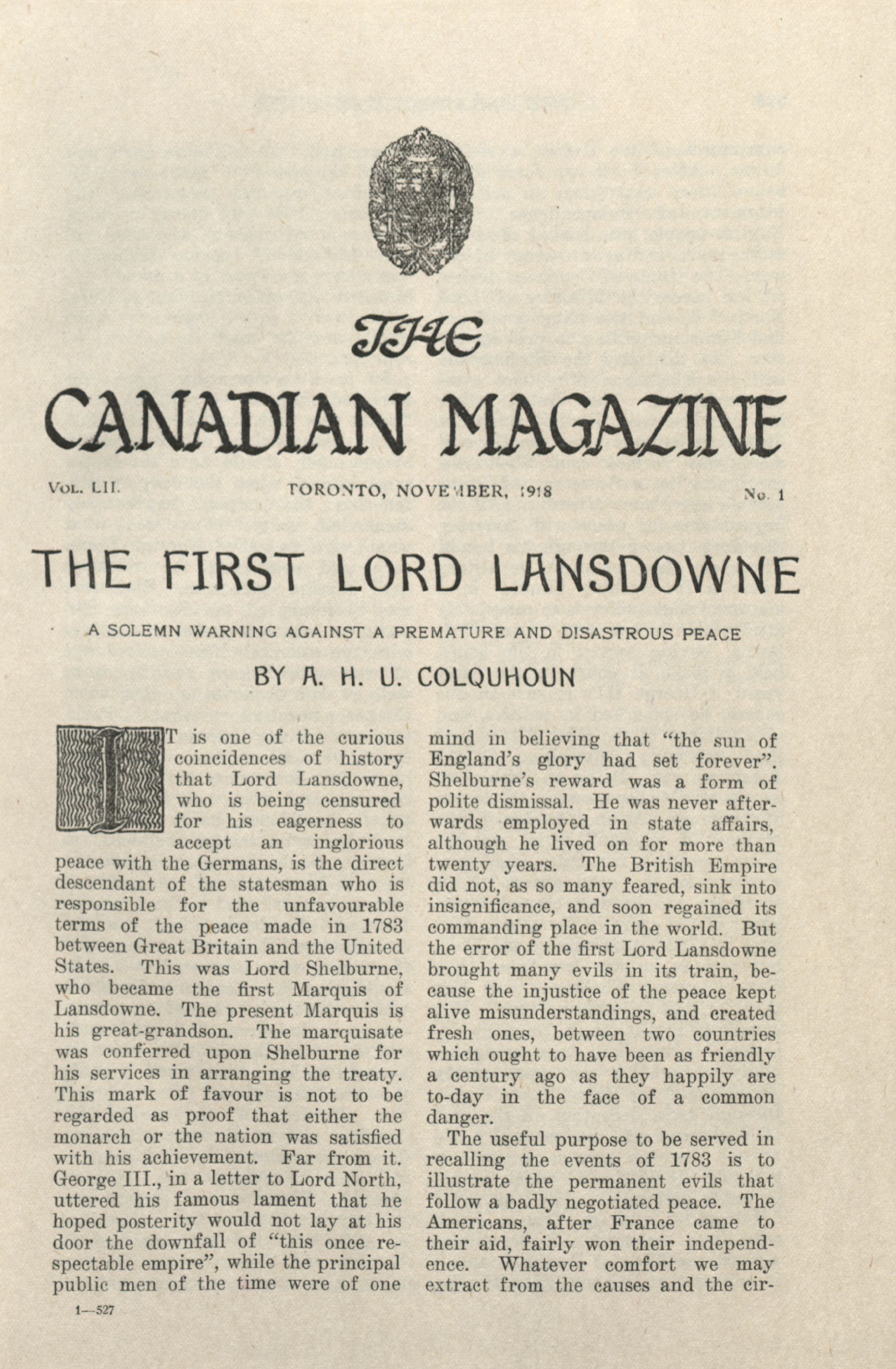 The Canadian magazine : Vol. 52, no. 1 (Nov. 1918)