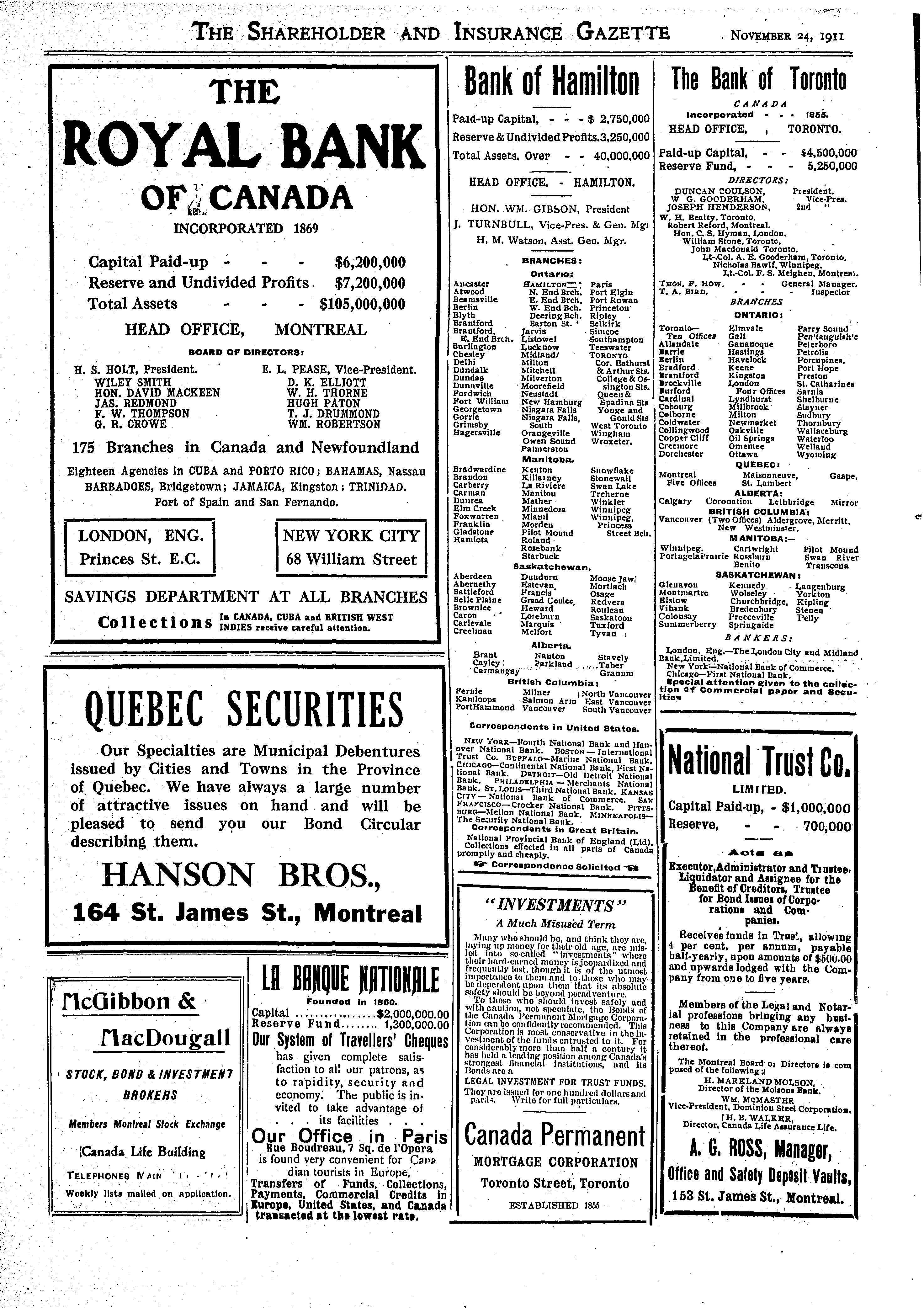 The shareholder and insurance gazette : [Vol. 31, no. 47 (Nov. 24, 1911)]