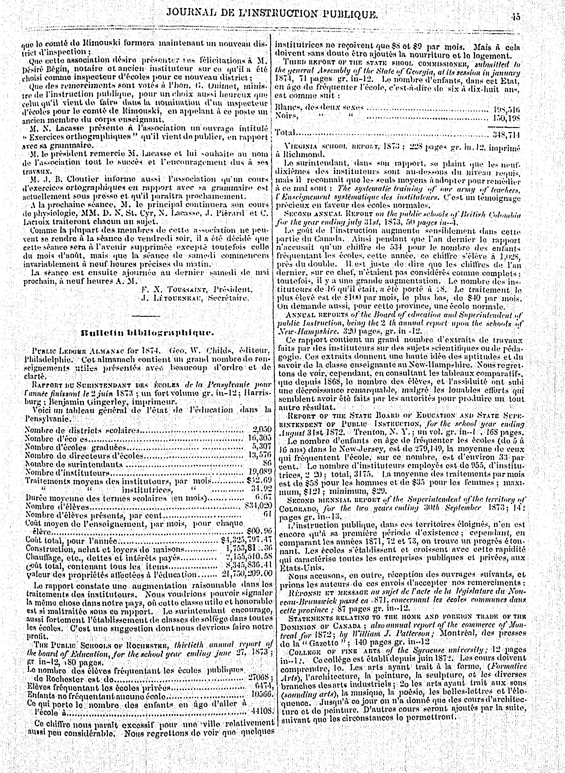 Québec : Ministère de l'instruction publique, [1874]