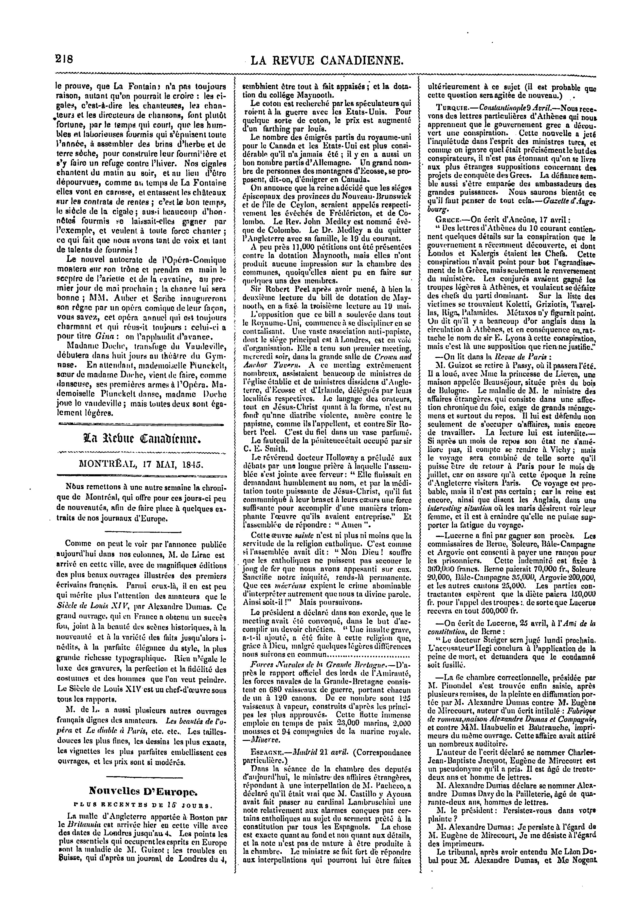 La revue canadienne : [Vol. 1, no 21 (24 mai 1845)]