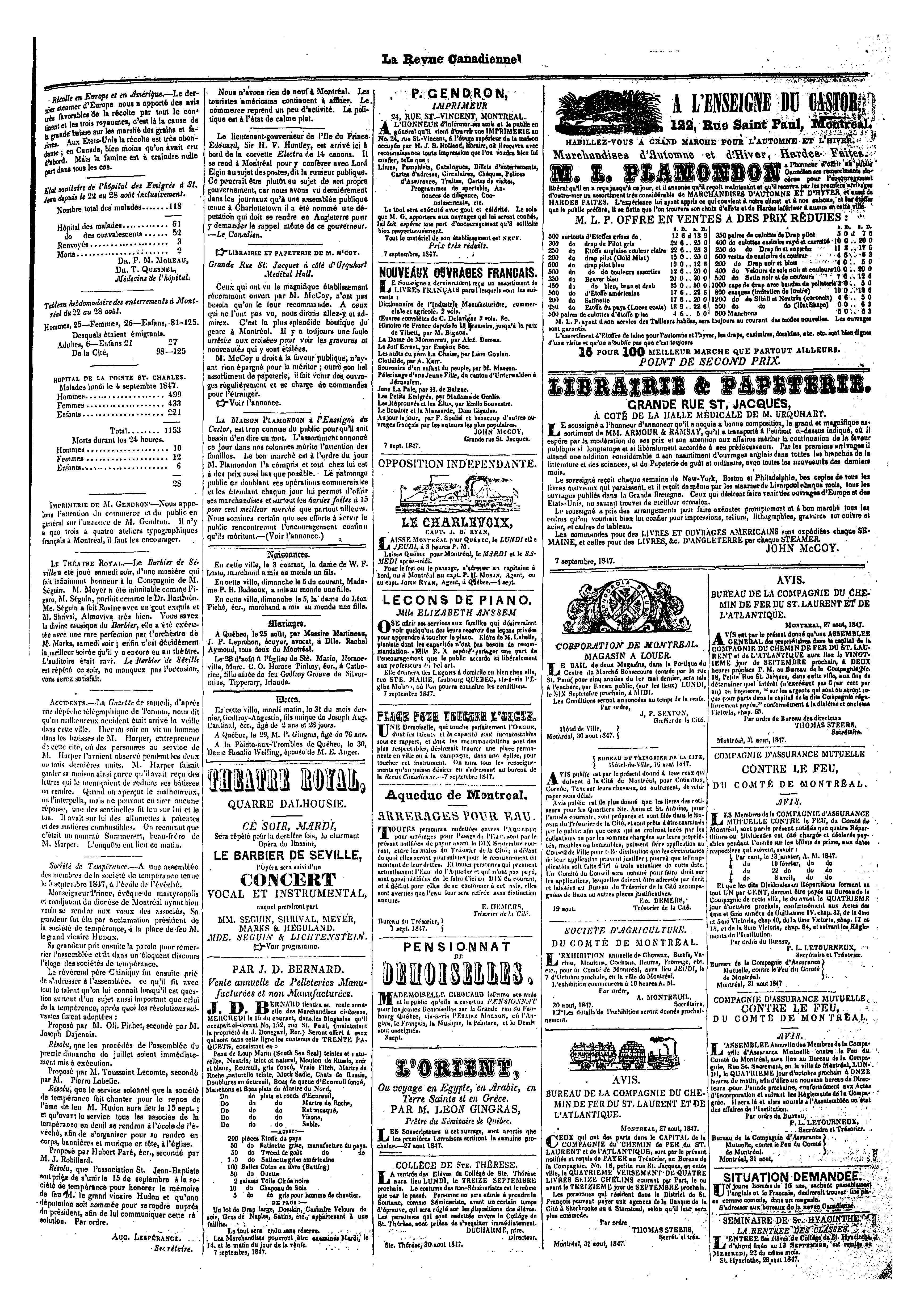 La revue canadienne [Vol. 4, no 43 (7 sept. 1847)]