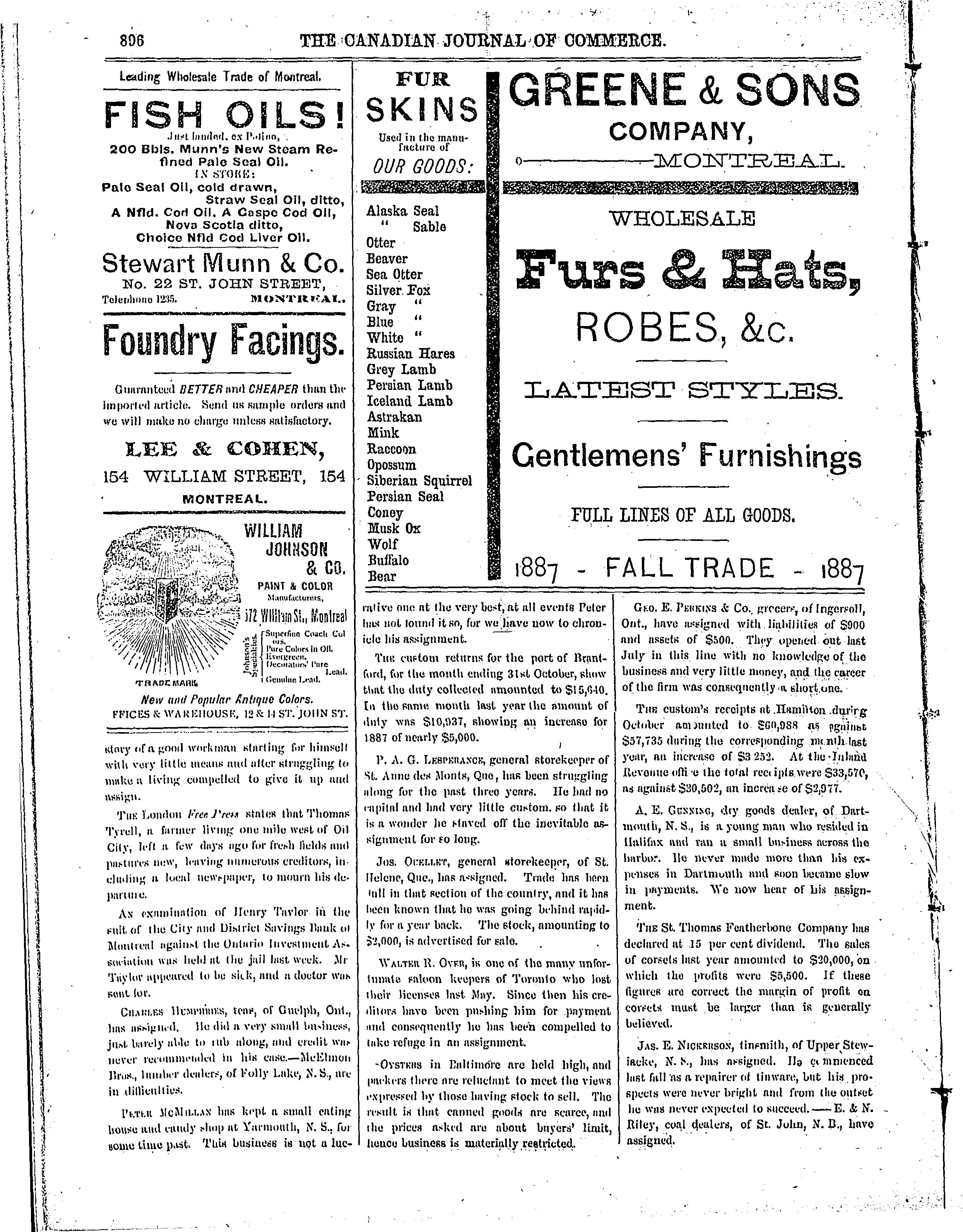 The Canadian journal of commerce, finance and insurance review : [New ser. v. 25, no. 19 (Nov. 11, 1887)]
