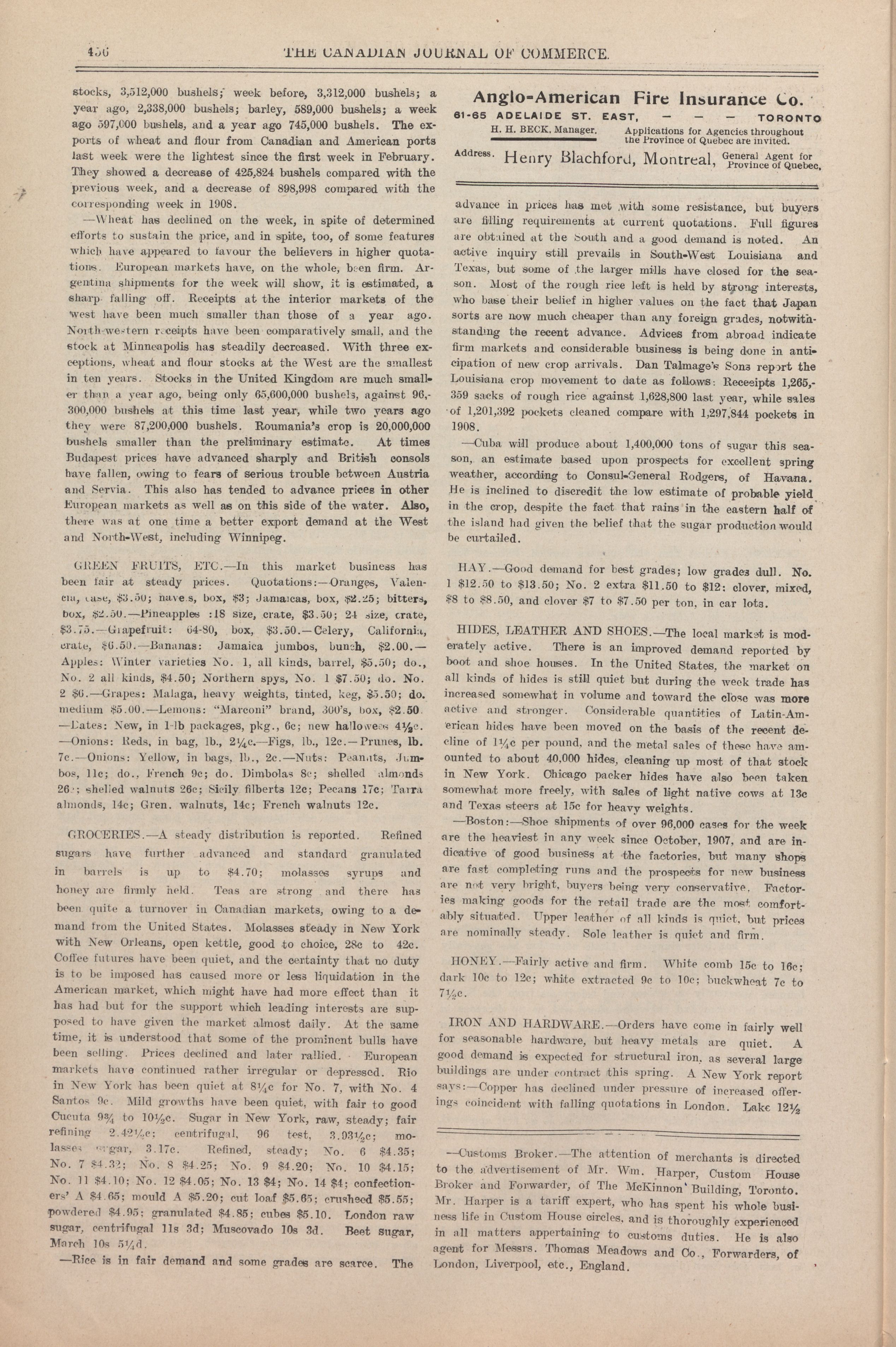 The Canadian journal of commerce, finance and insurance review : New Series Vol. 68, No. 13 (March 26, 1909)