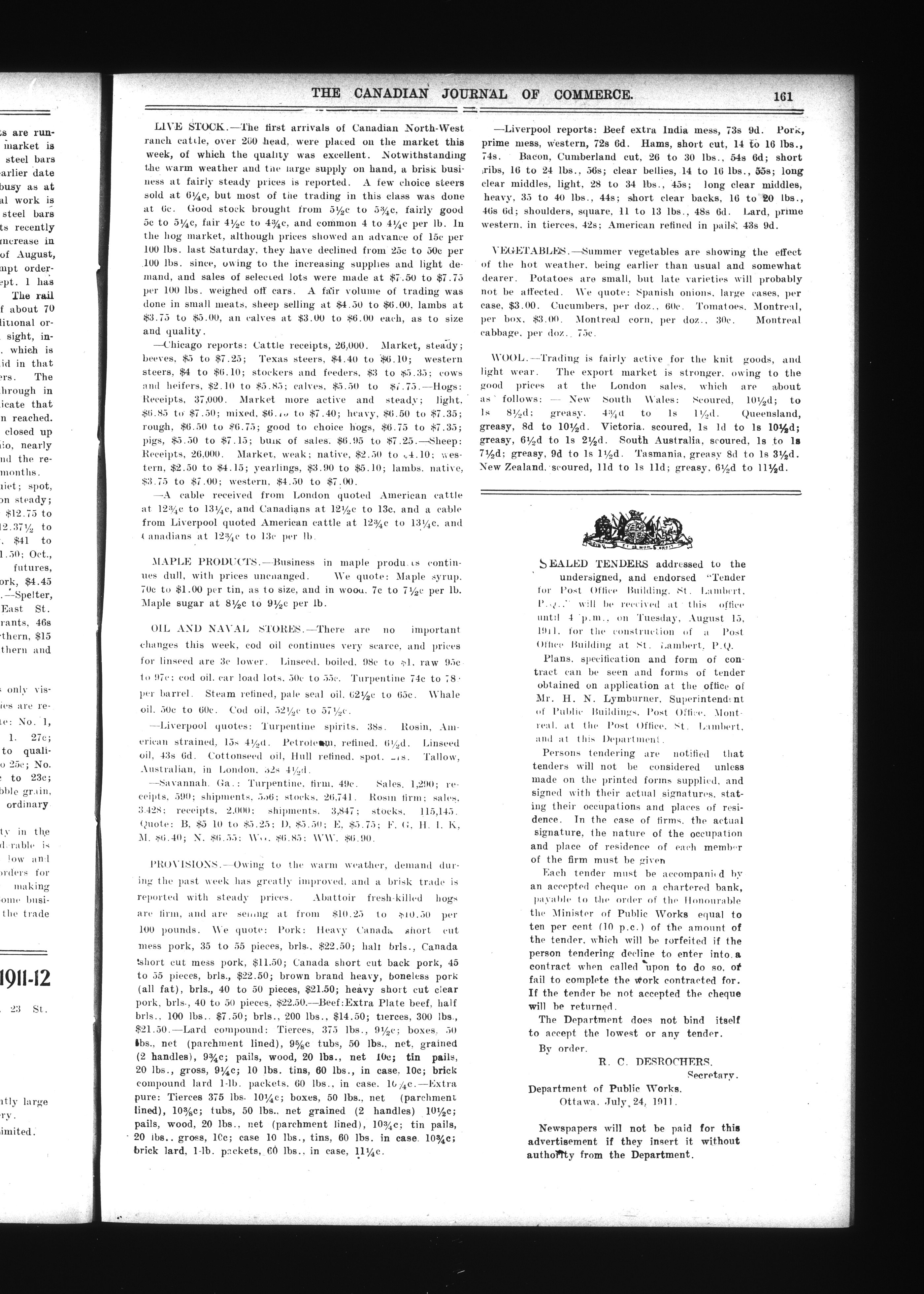 The Canadian journal of commerce, finance and insurance review : New Series Vol. 73, No. 5 (August 4, 1911)