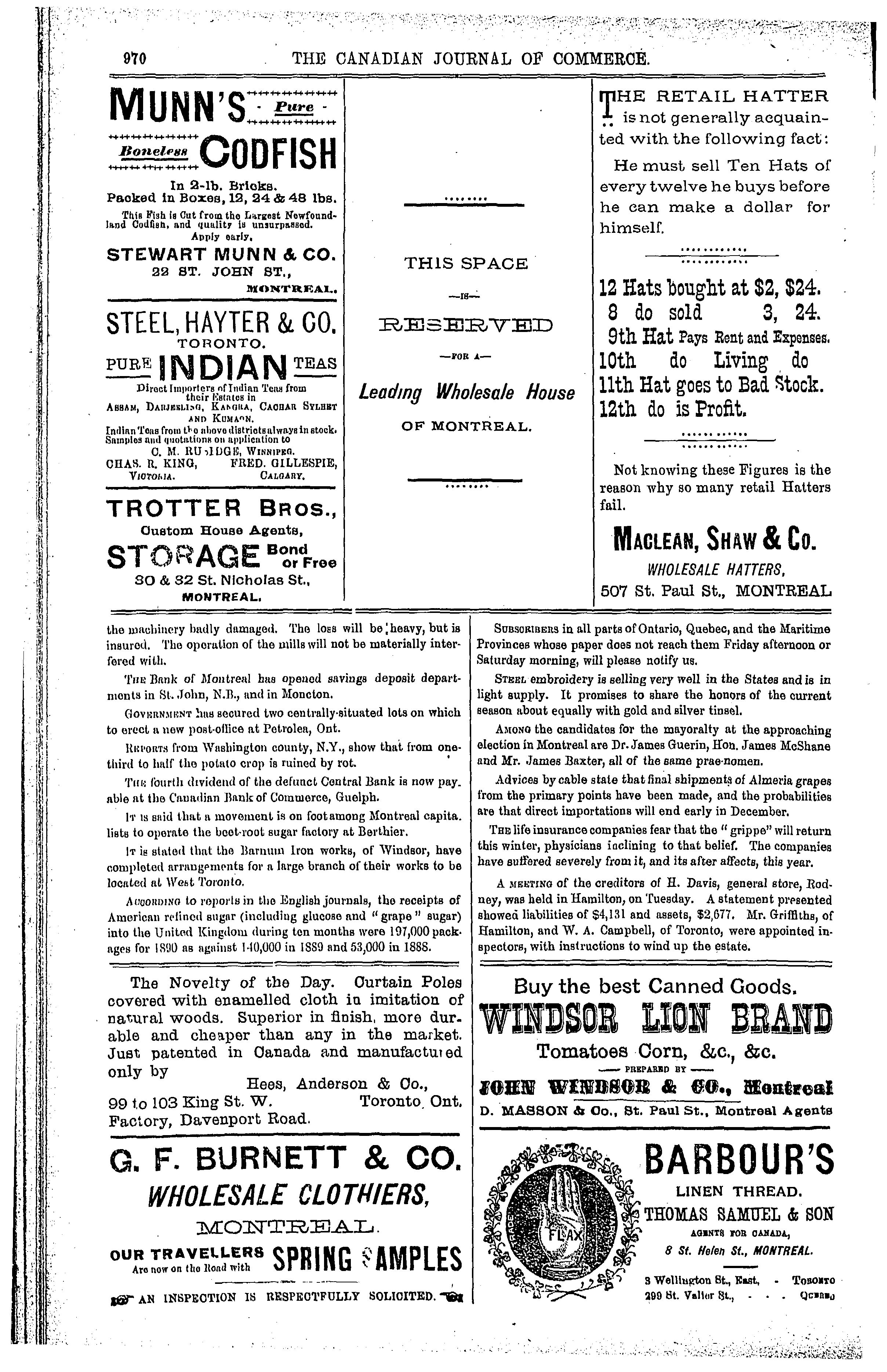 The Canadian journal of commerce, finance and insurance review [New ser. v. 31, no. 21 (Nov. 21, 1890)]