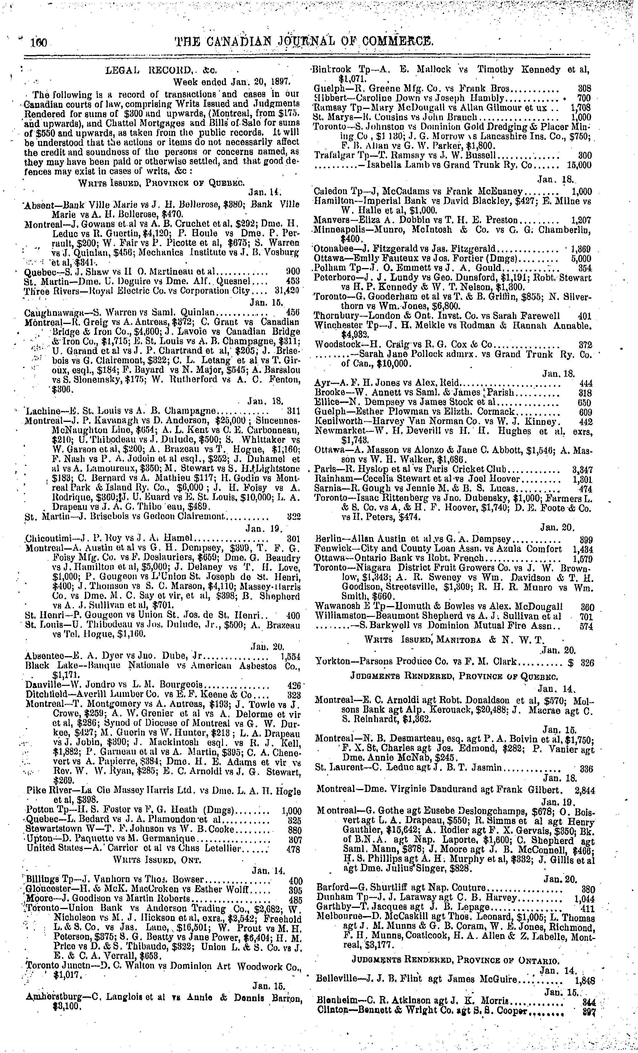 - The Canadian journal of commerce, finance and insurance review [New ser. v. 44, no. 3 (Jan. 22, 1897)]