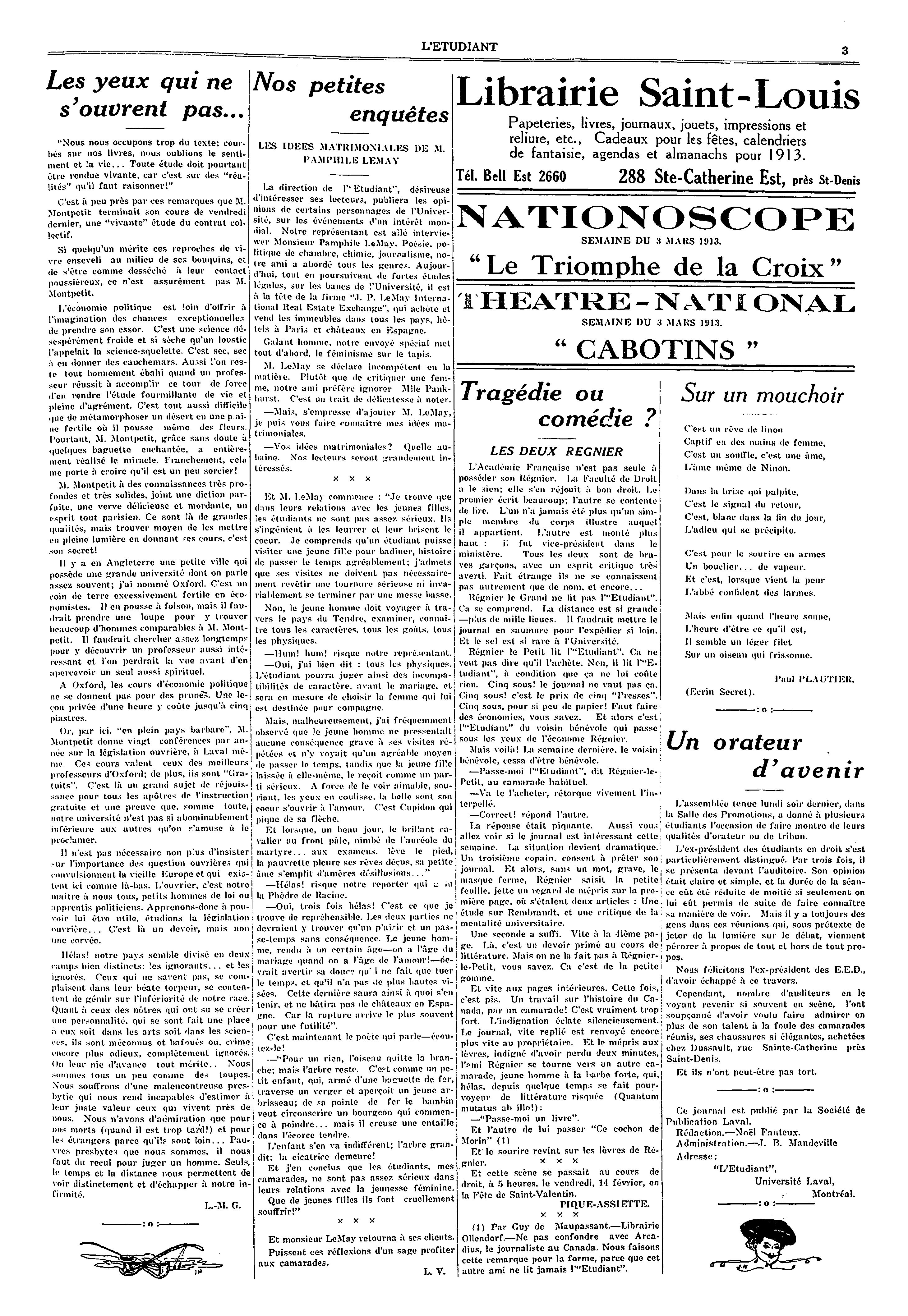 L'étudiant : [2e année, no 15 (28 févr. 1913)]