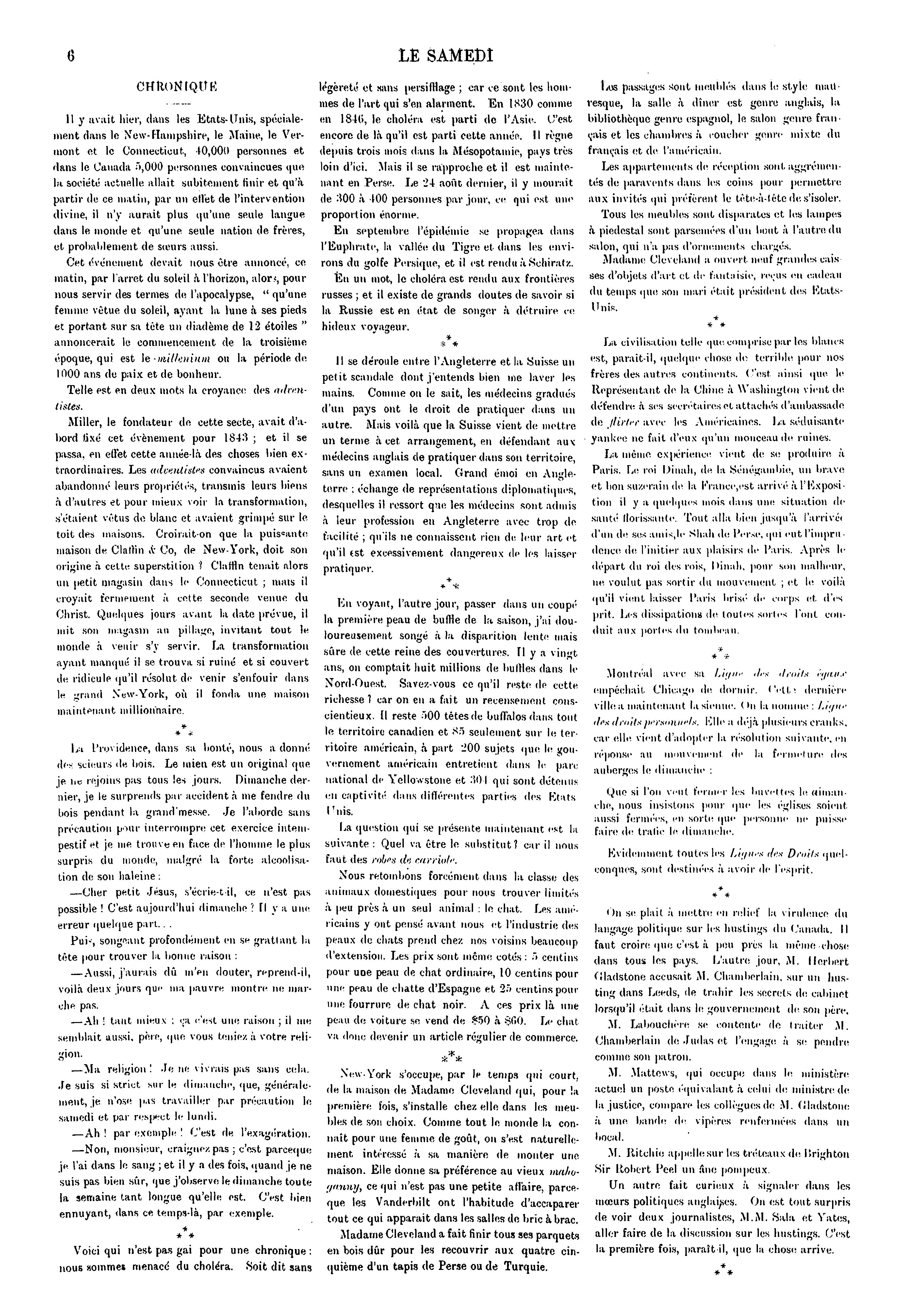 Le samedi [Vol. 1, no 20 (26 oct. 1889)]