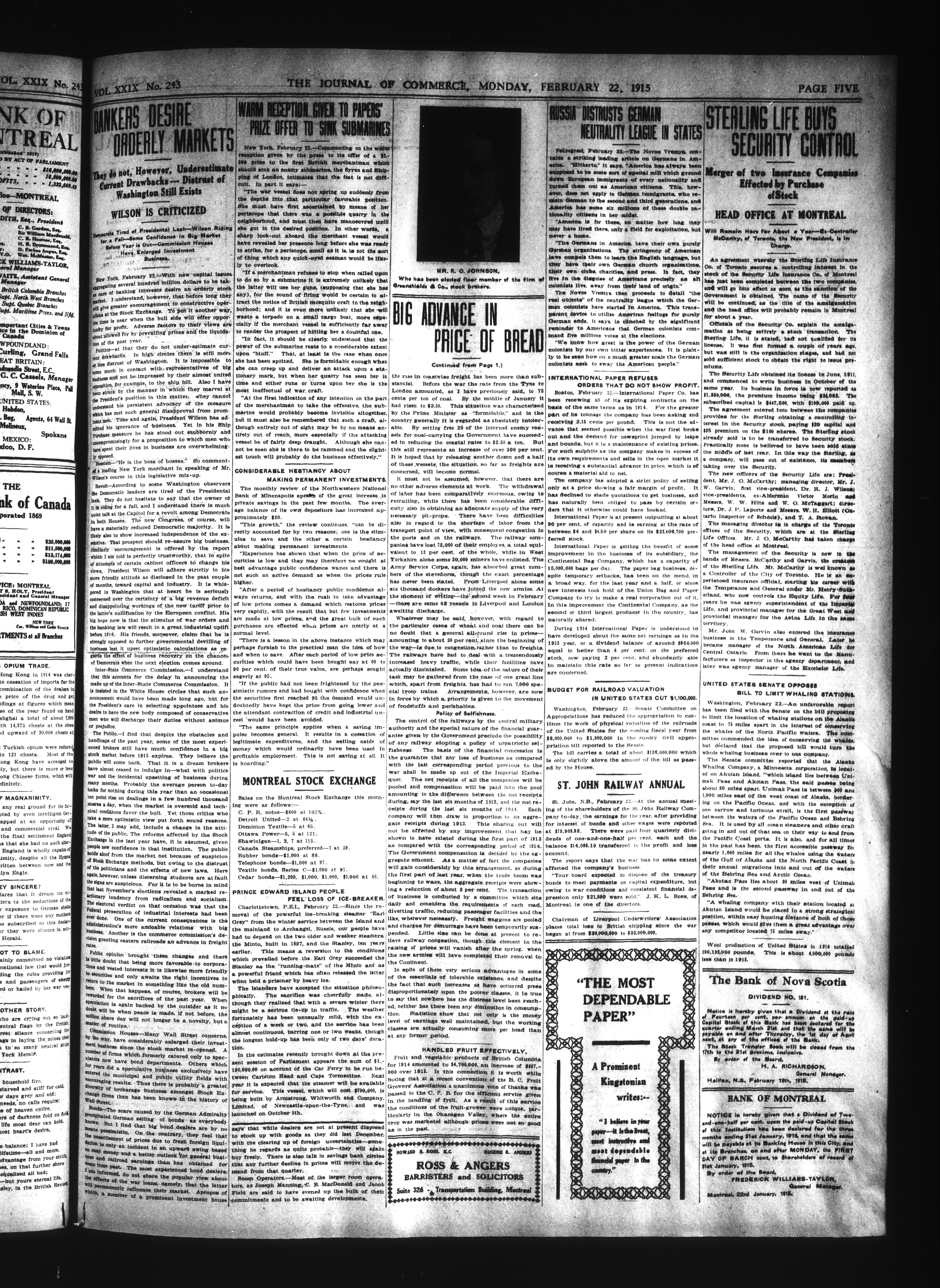 The Journal of Commerce : Vol. XXIX, No. 243 (February 22, 1915)