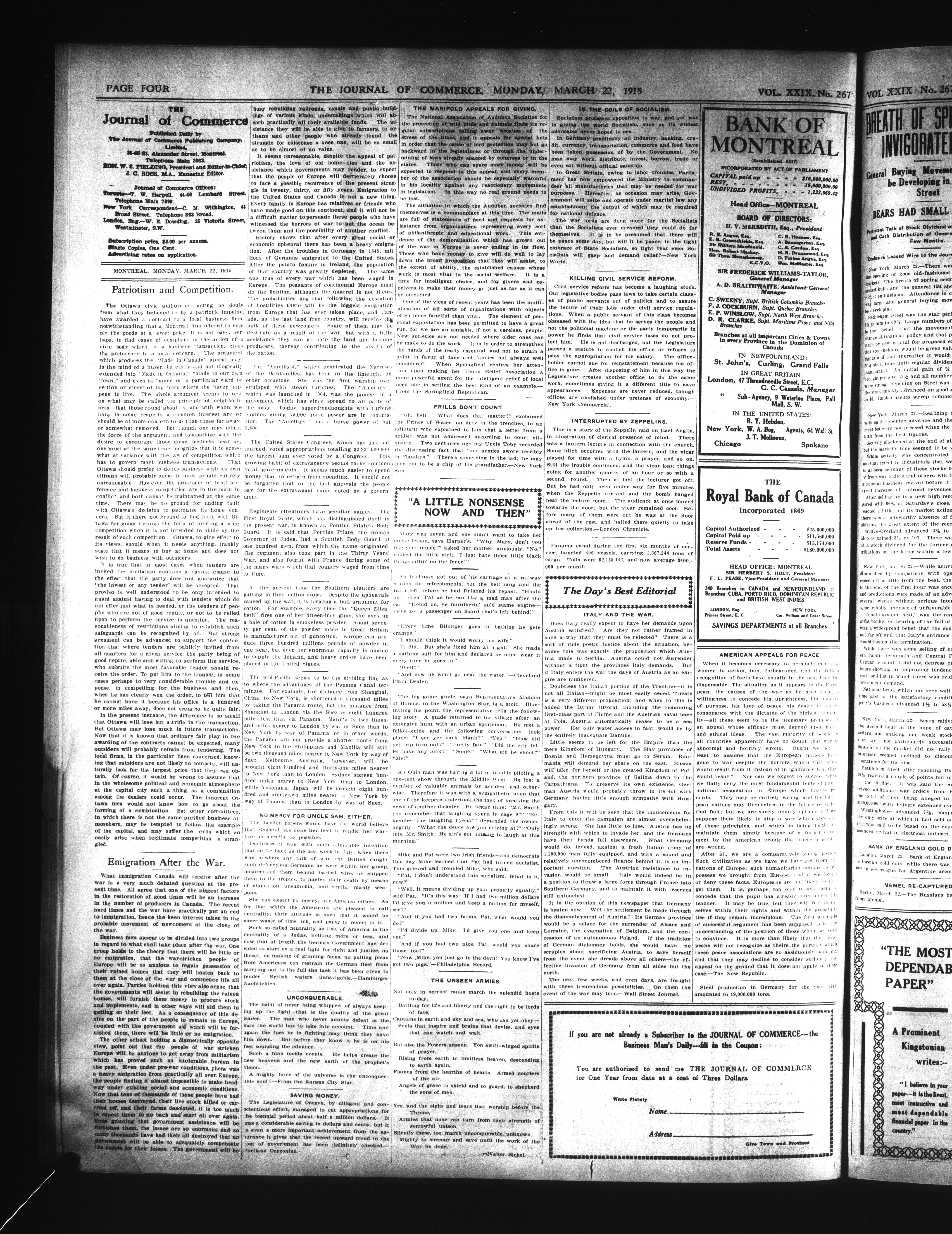 The Journal of Commerce : Vol. XXIX, No. 267 (March 22, 1915)