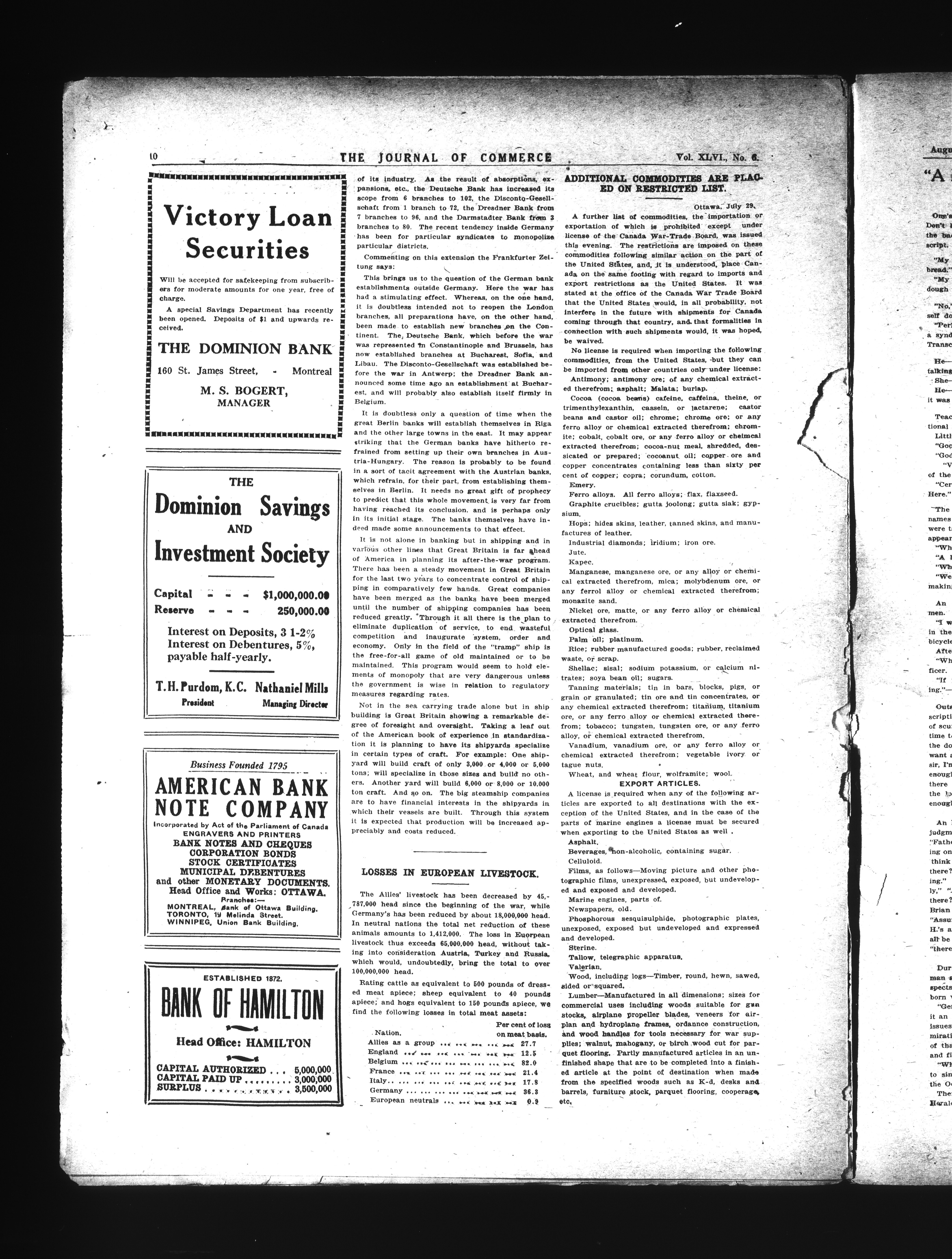 The Journal of Commerce : Vol. XLVI, No. 6 (August 6, 1918)