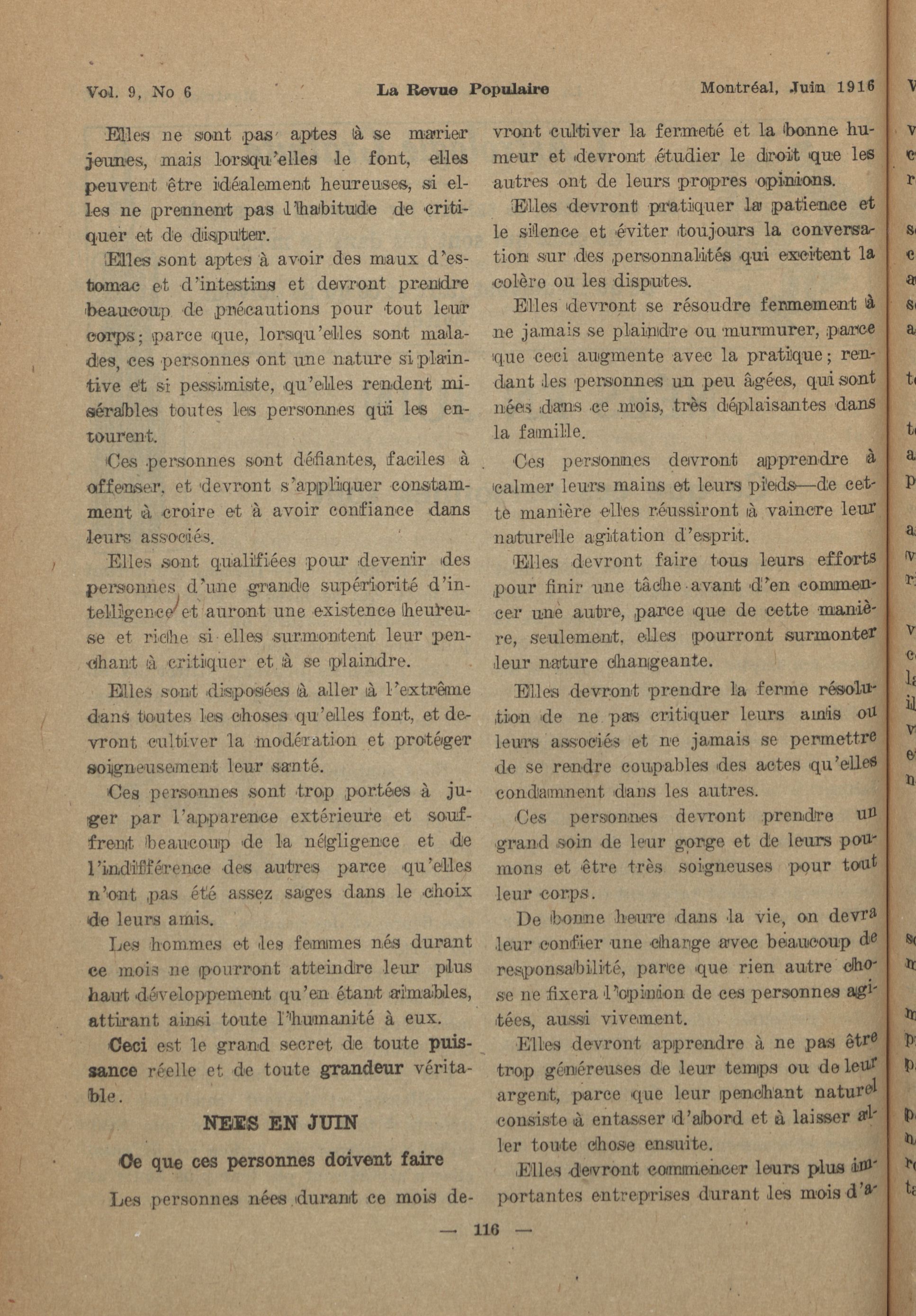 - La Revue Populaire : Vol. 9, No 6 (Juin 1916)