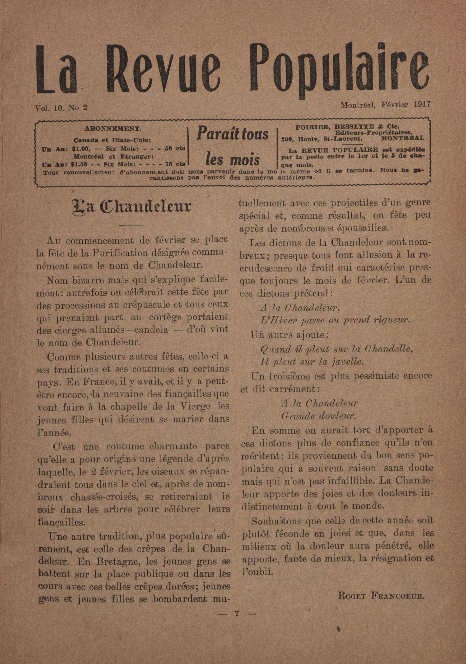 - La Revue Populaire : Vol. 10, No 2 (Février 1917)