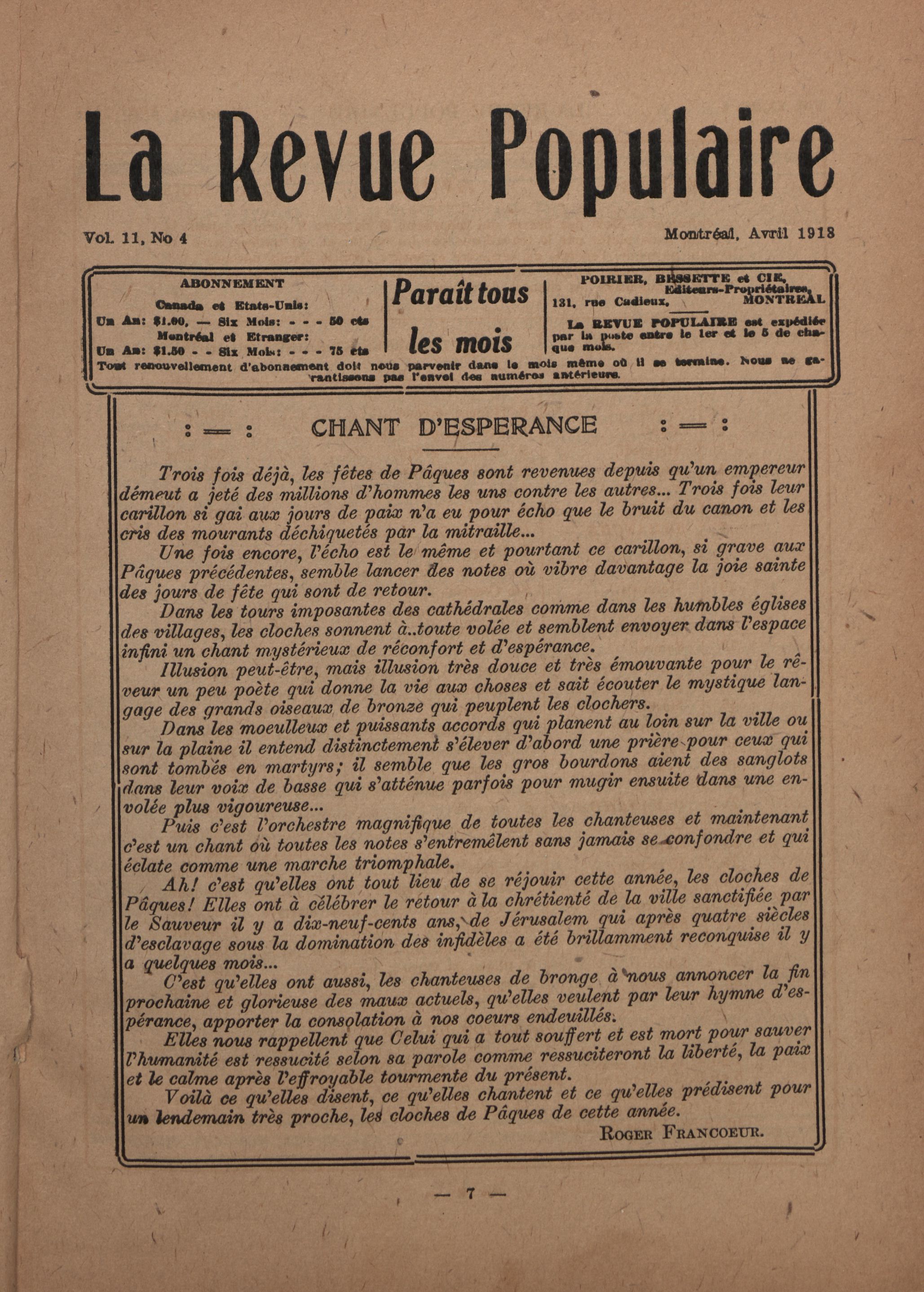 La Revue populaire. : La revue populaire : Vol. 11, No 4 (Avril 1918)