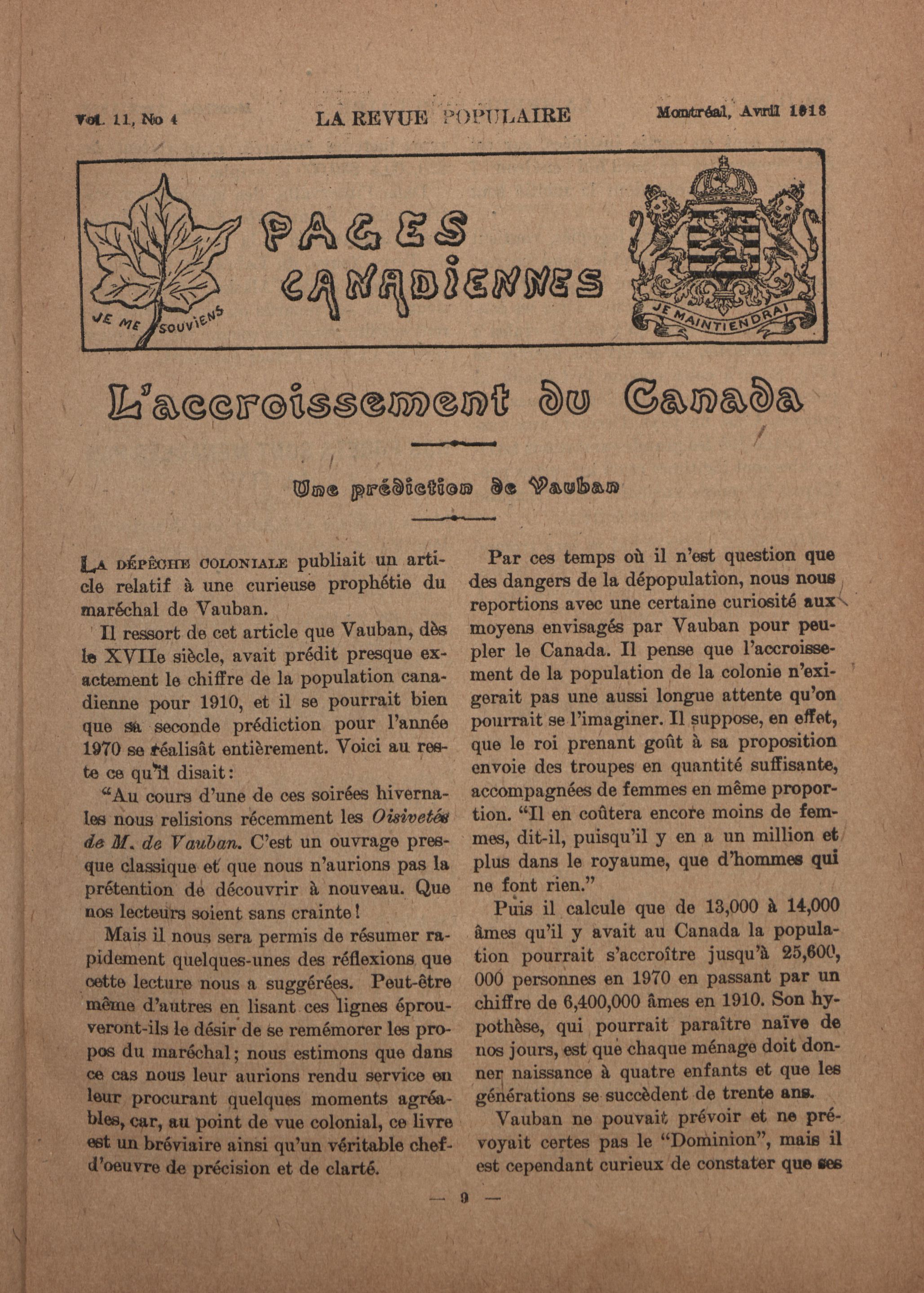 La revue populaire : Vol. 11, No 4 (Avril 1918)