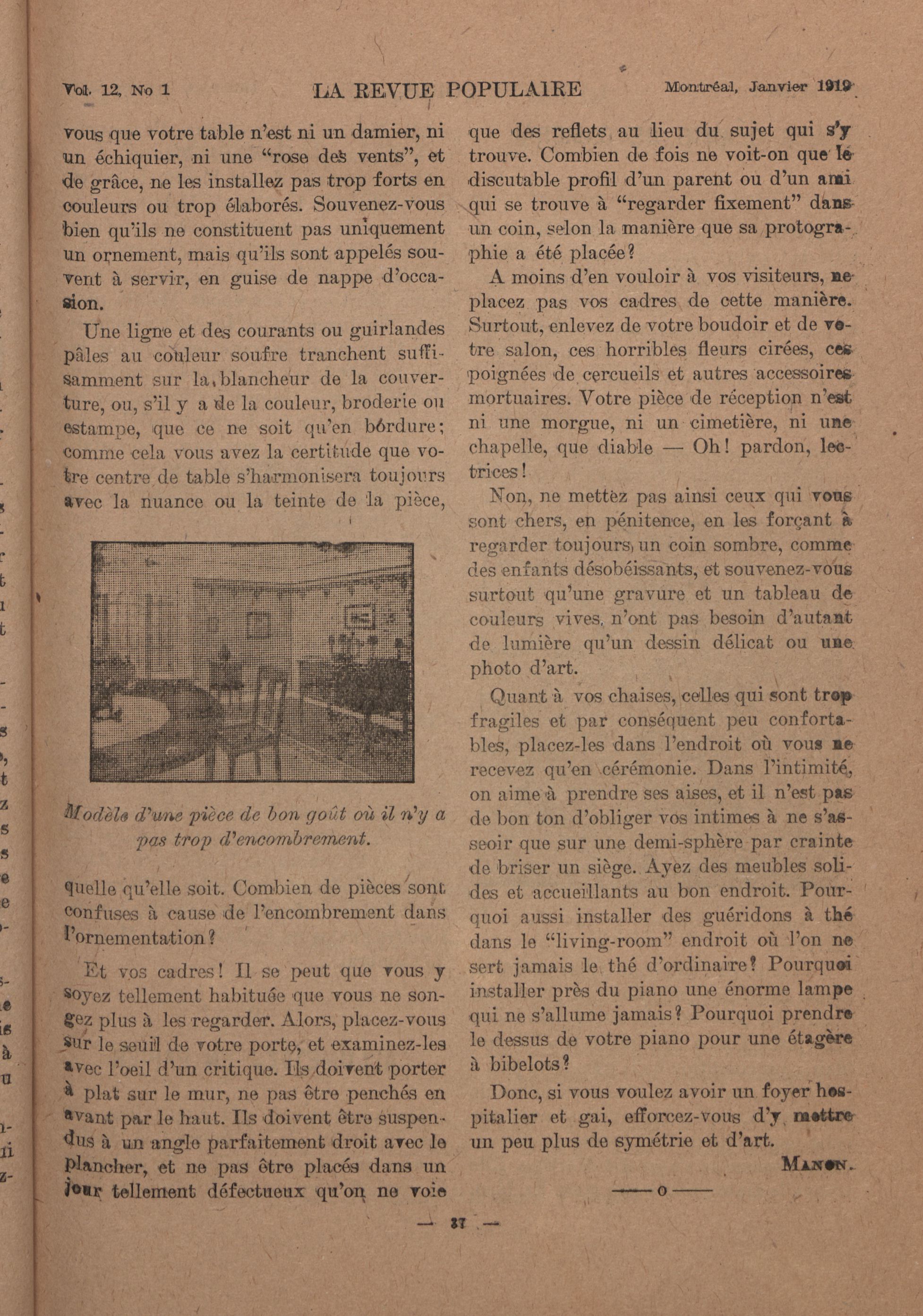 La Revue populaire. : La revue populaire : Vol. 12, No 1 (Janvier 1919)