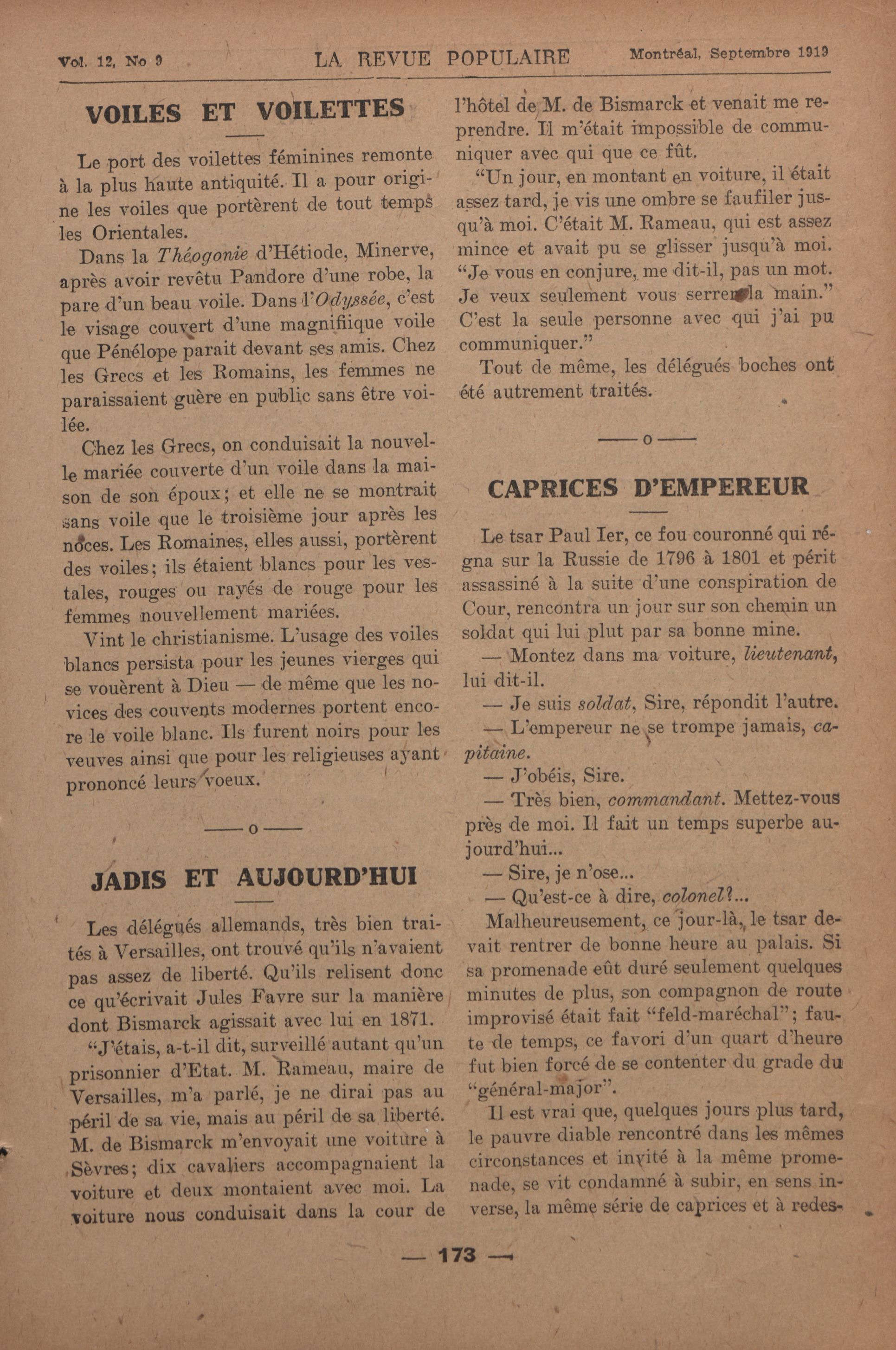 La revue populaire : Vol. 12, No 9 (Septembre 1919)
