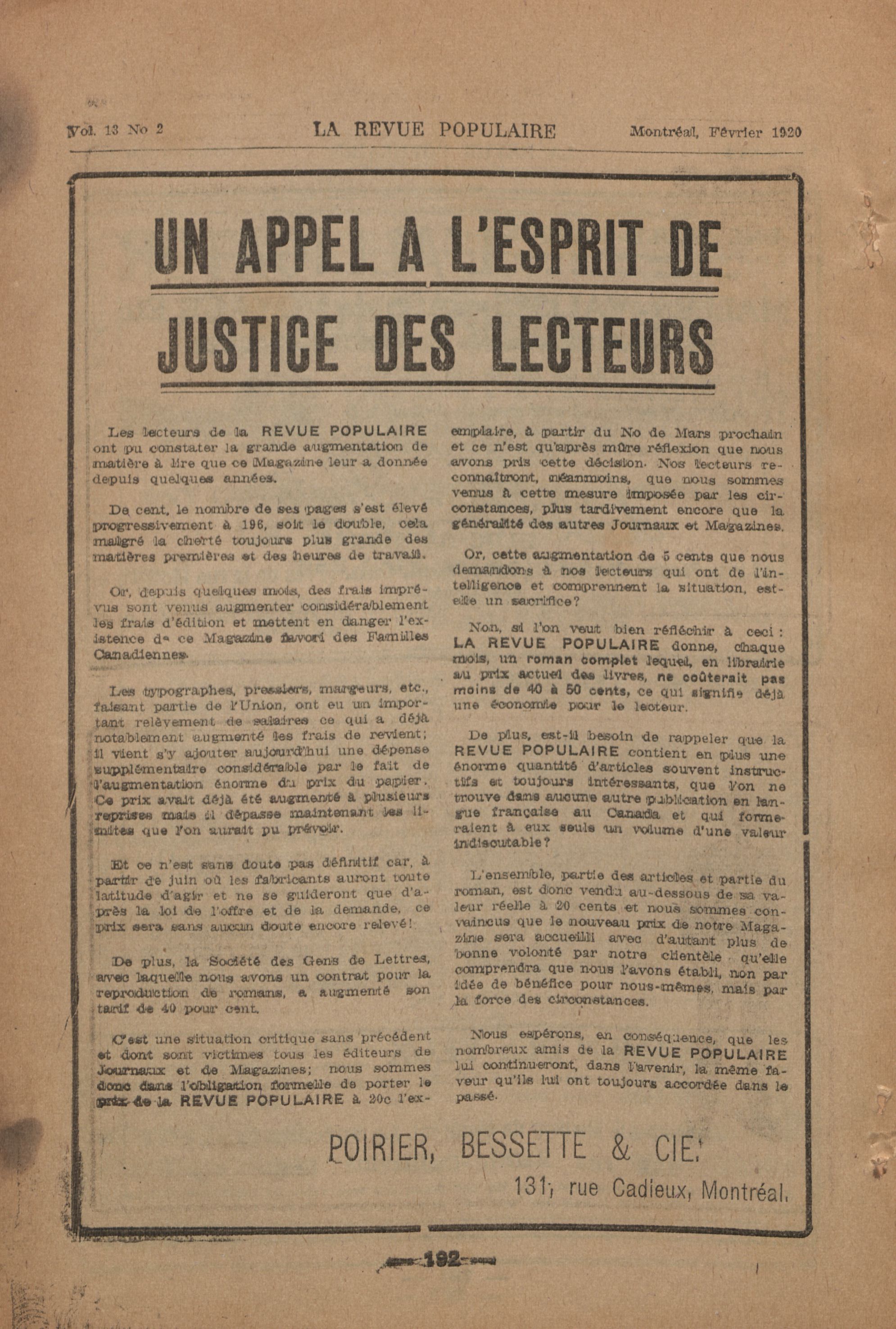 Montréal: Poirier, Bessette & Cie, [1920]; 196 images, 155 avec recherche en texte intégral