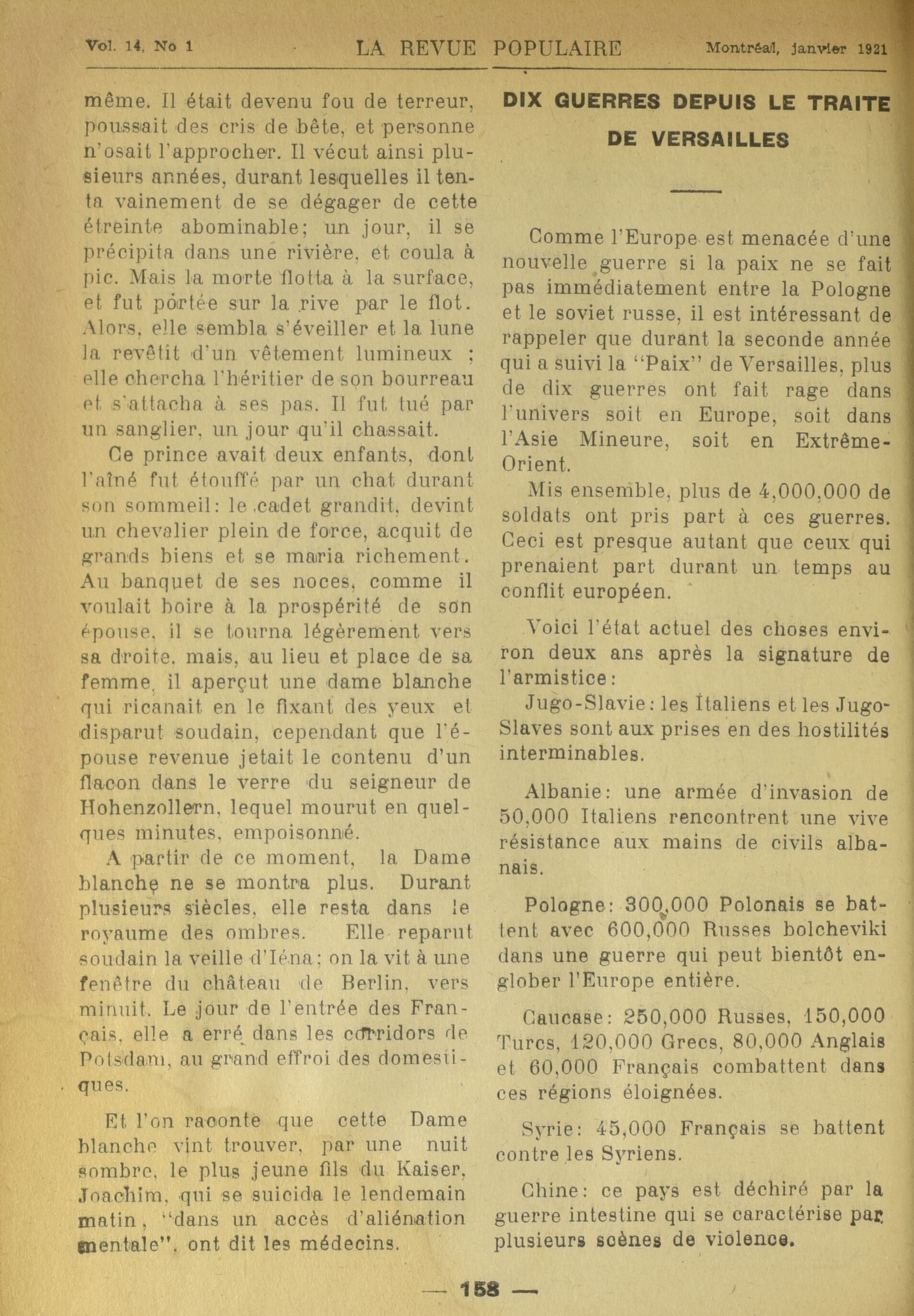 - La revue populaire : Vol. 14, No 1 (janvier 1921)