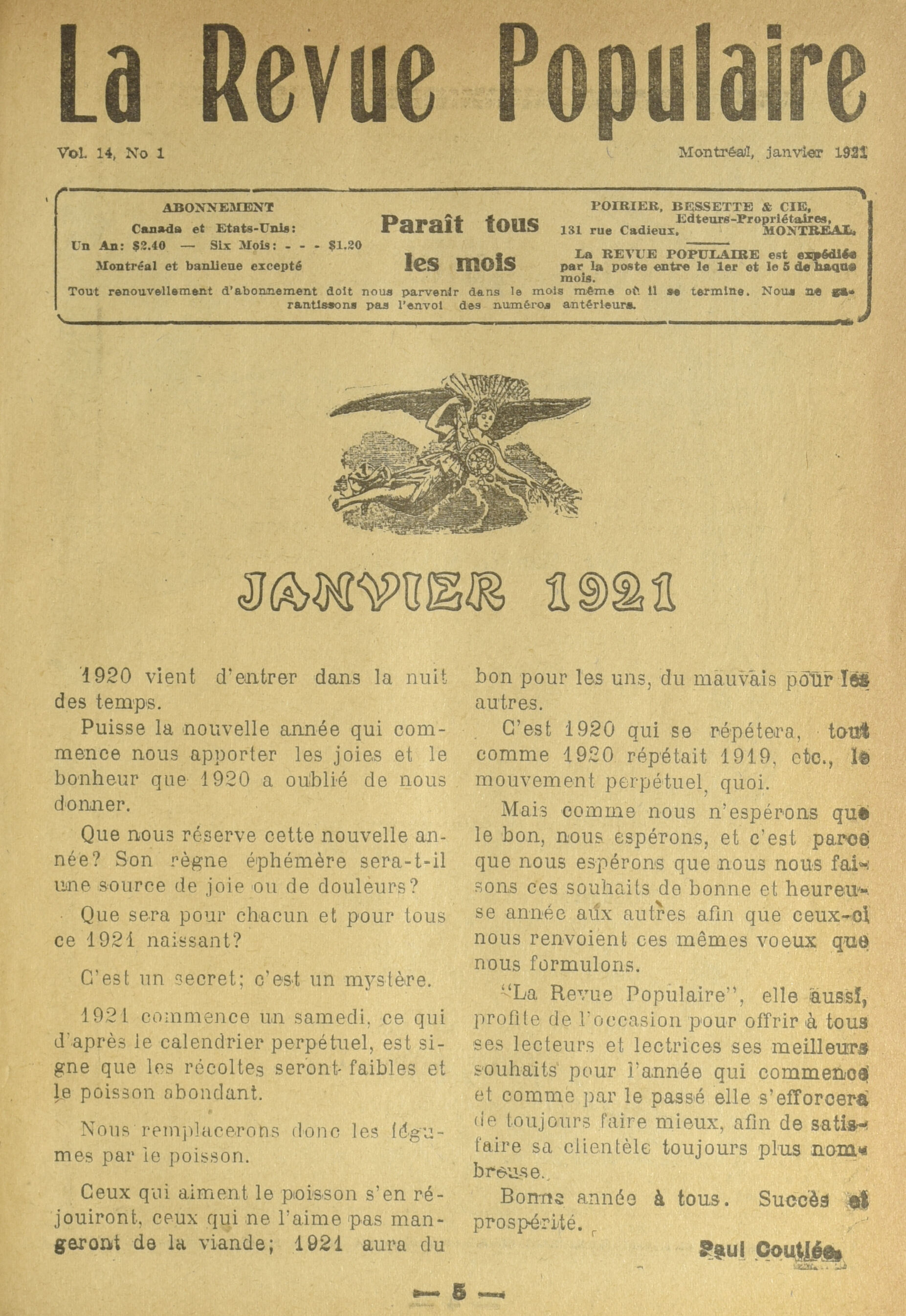 La Revue populaire. : La revue populaire : Vol. 14, No 1 (janvier 1921)