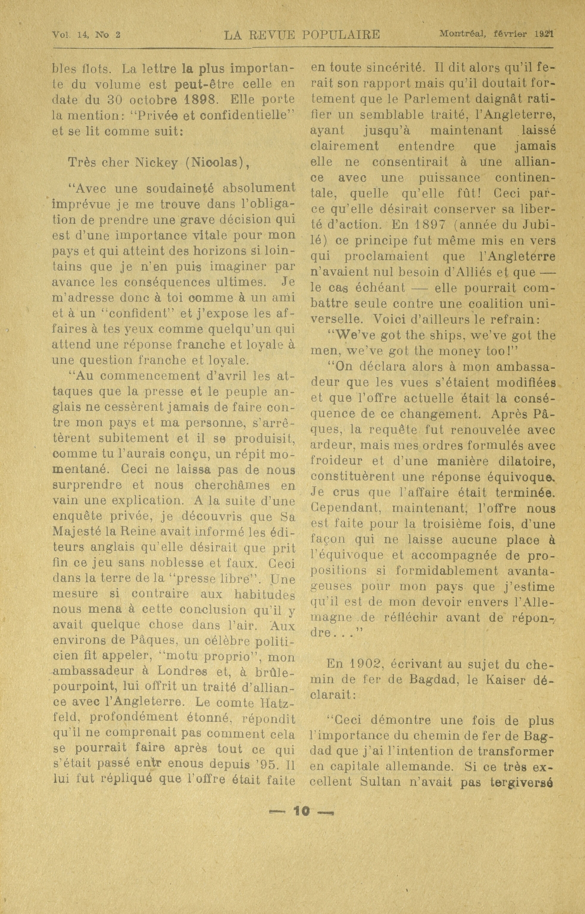 La Revue populaire. : La revue populaire : Vol. 14, No 2 (février 1921)