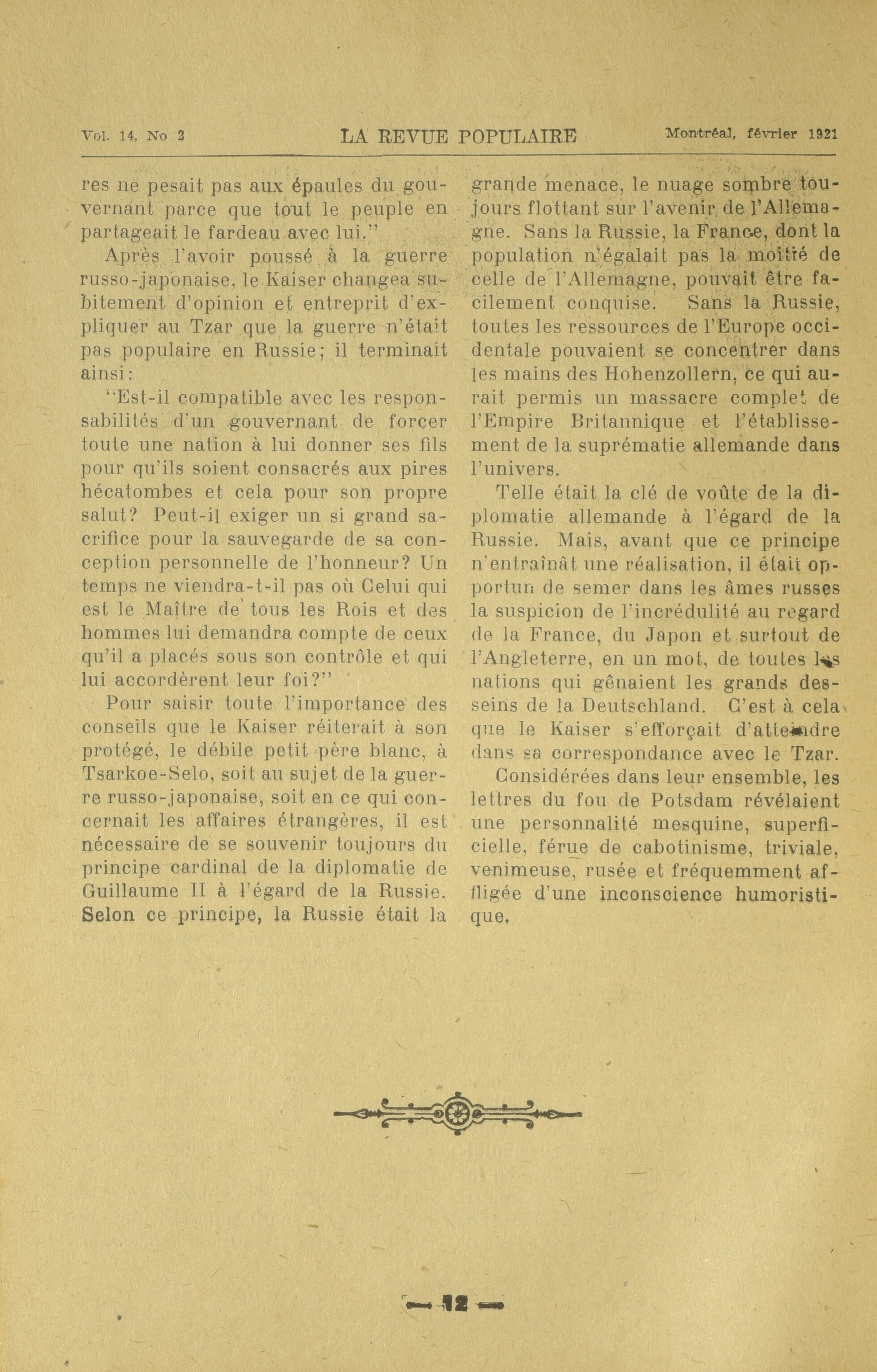La revue populaire : Vol. 14, No 2 (février 1921)