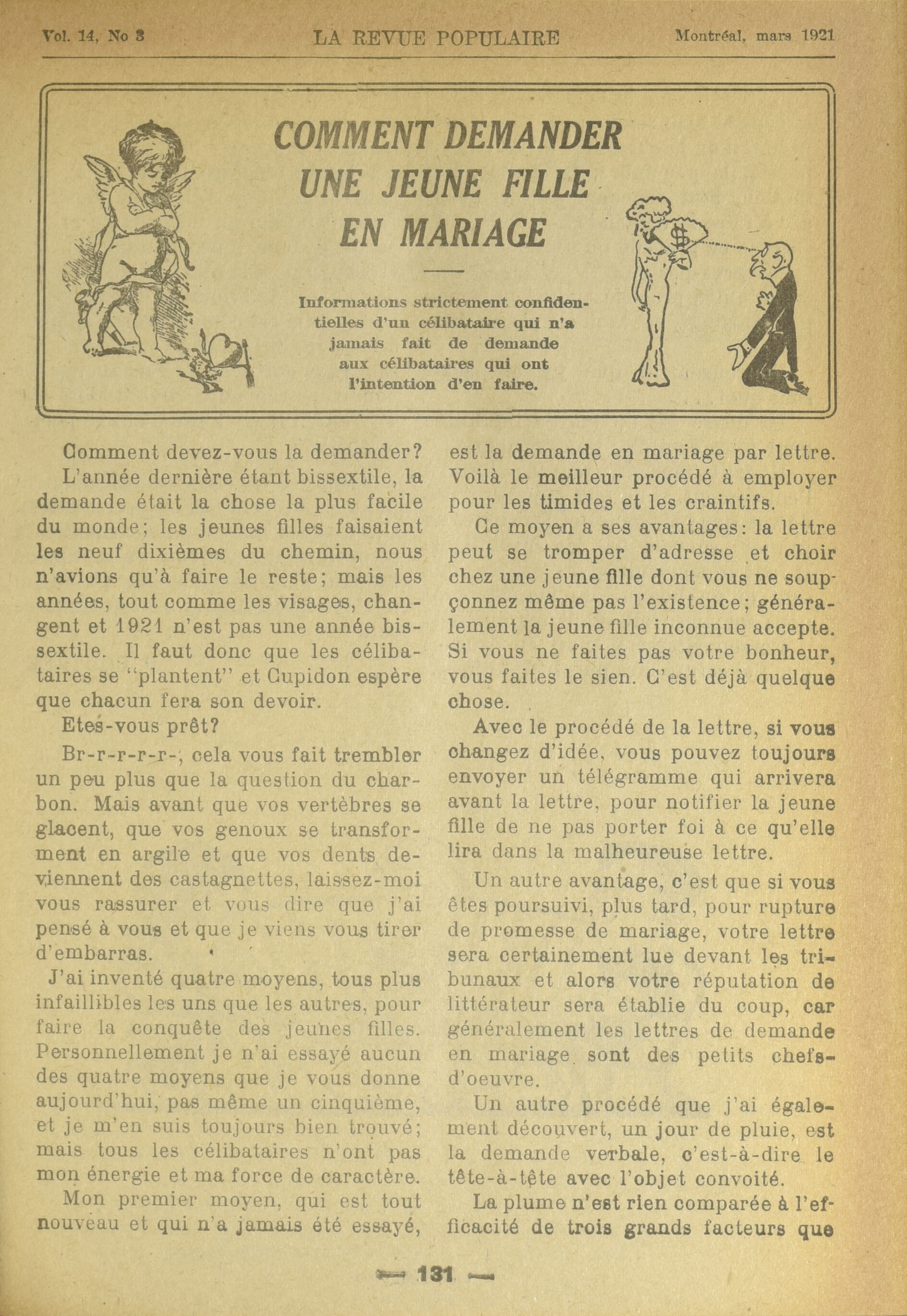 La Revue populaire. : La revue populaire : Vol. 14, No 3 (mars 1921)