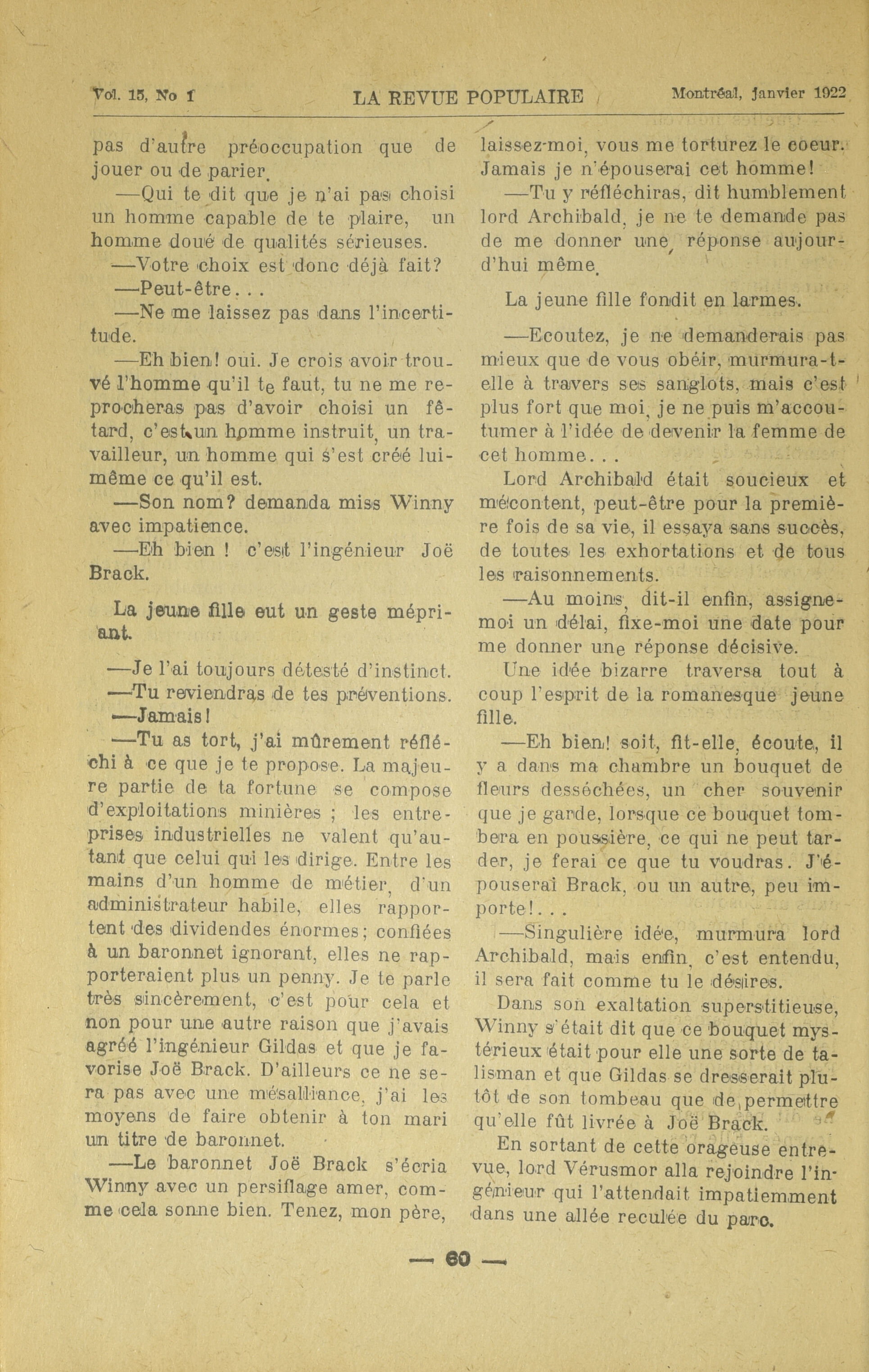 La Revue populaire. : La revue populaire : Vol. 15, No 1 (janvier 1922)