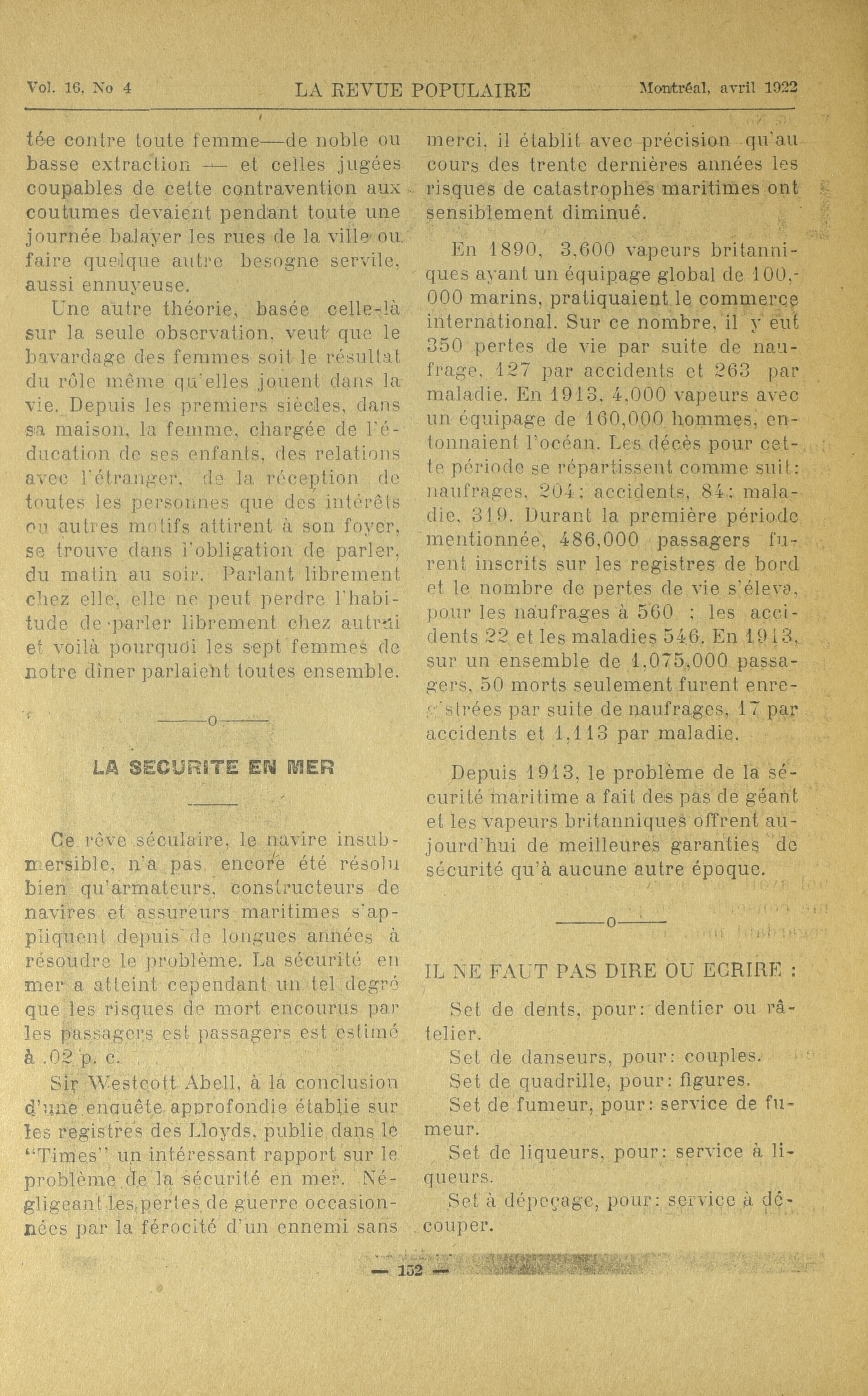 - La revue populaire : Vol. 16, No 4 (avril 1922)