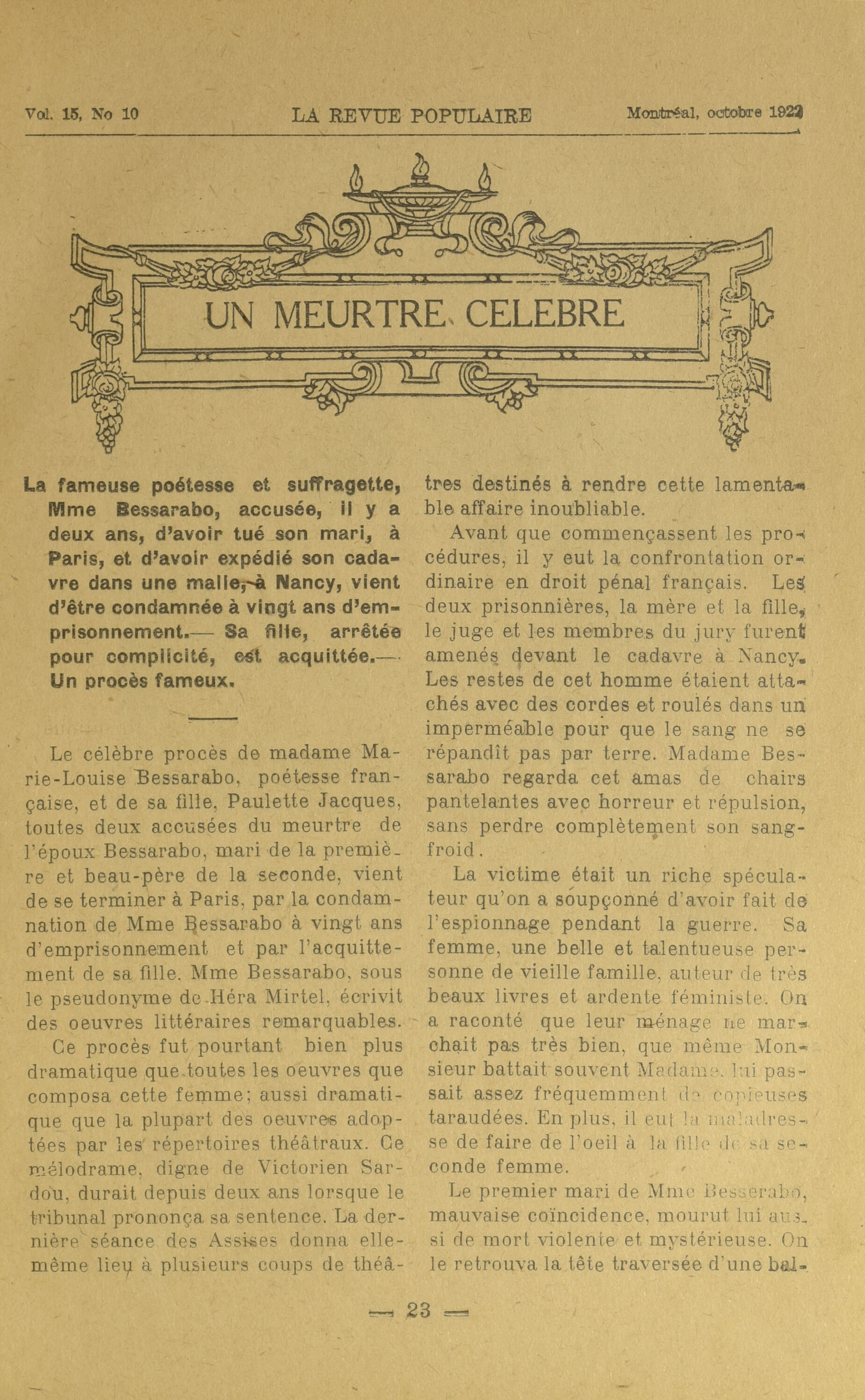La Revue populaire. : La revue populaire : Vol. 15, No 10 (octobre 1922)