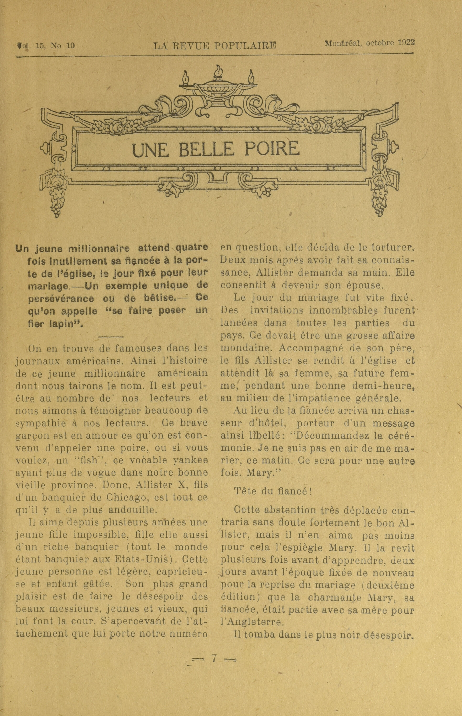 La revue populaire : Vol. 15, No 10 (octobre 1922)